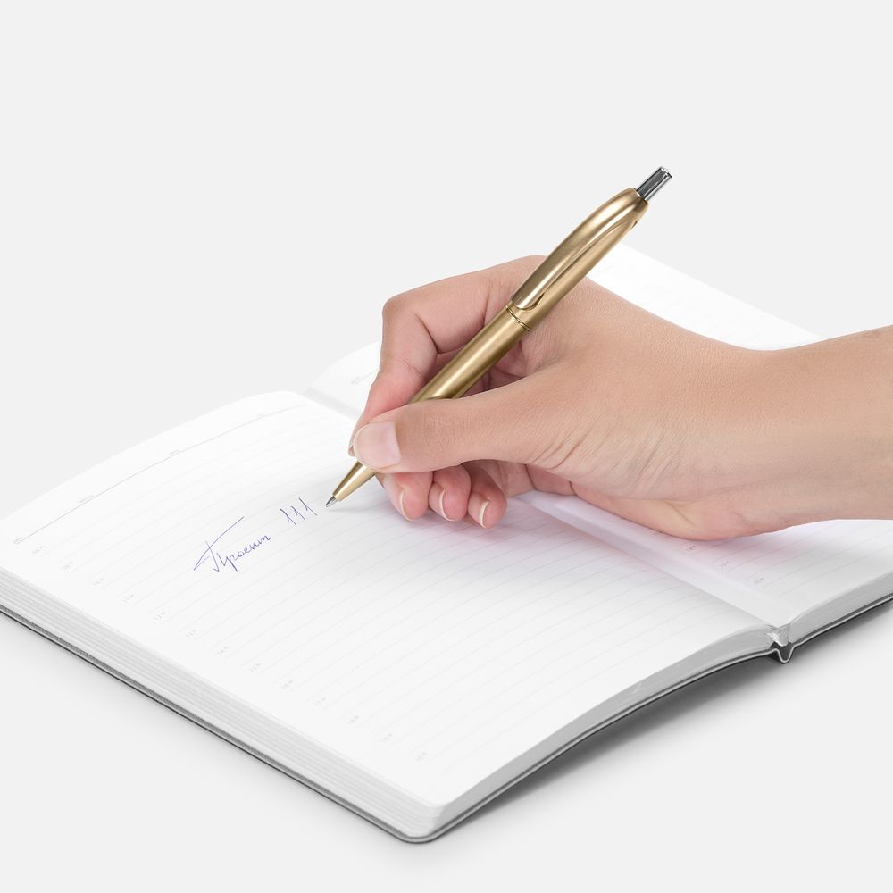 Шариковая пластиковая ручка в корпусе с эффектом «металлик» и серебристыми деталями. Приятная округлая форма клипа добавляет ручке плавности и объема.