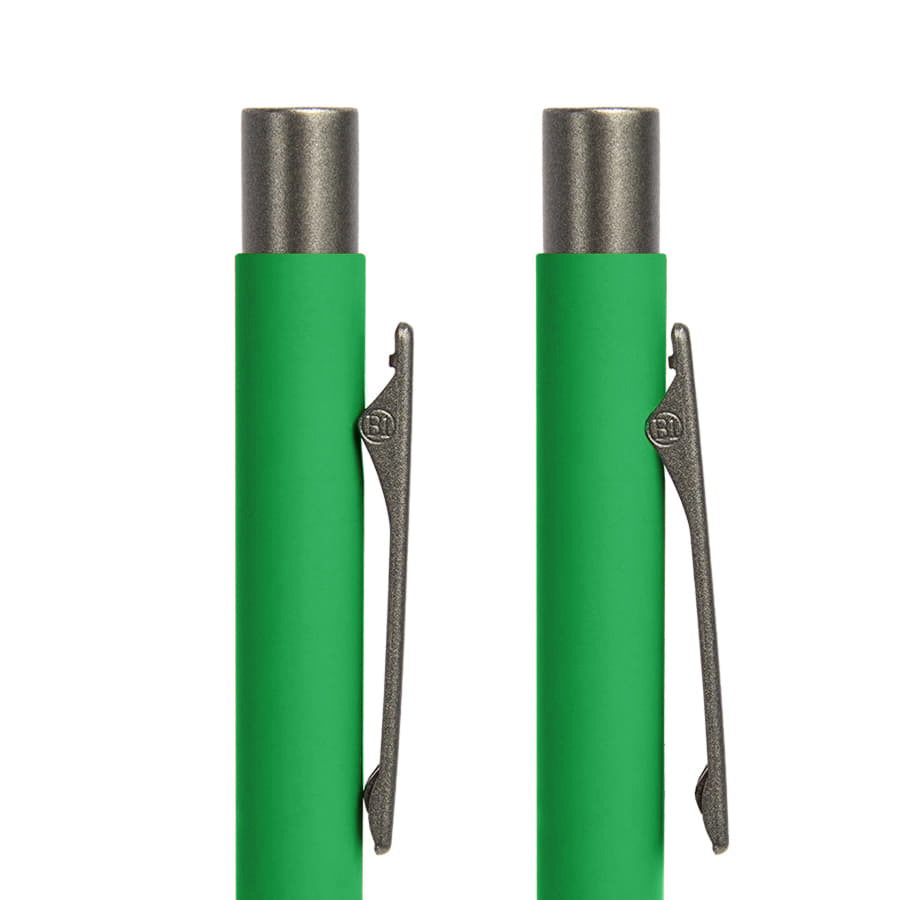 Модель ручки FACTOR – это оптимальный выбор для тех, кто предпочитает добротное качество, надежность и изящную простоту. Этой ручкой писать легко и удобно, она буквально скользит по бумаге благодаря качественным чернилам и надежному пишущему узлу. Все эти качества позволят ручке служить вам верой и правдой долгое время. А клип и корпус данной модели отлично подойдут для нанесения вашего логотипа. • Pantone, близкий к 299 С• Размер 140*10 мм• Корпус из алюминия с покрытием soft touch• Металлический клип-прищепка серого цвета • Пластиковые носик и кнопка в цвет клипа• Нажимной механизм подачи стержня• Пулевидный пишущий узел 1.0 мм• Длина линии письма 1000 м • Чернила Dokumental. Цвет чернил синий• Сменный стержень Parker type• При гравировке вскрывается натуральный цвет алюминия, который может быть либо более белый, либо более серого оттенка.