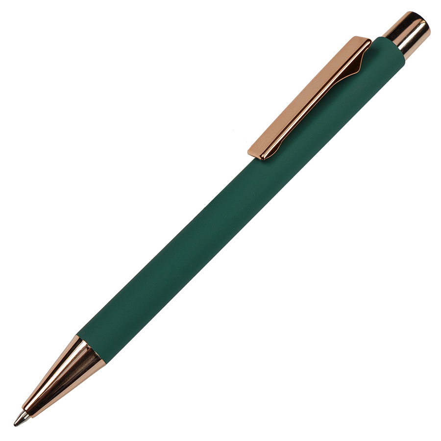 Модель ручки FACTOR – это оптимальный выбор для тех, кто предпочитает добротное качество, надежность и изящную простоту. Этой ручкой писать легко и удобно, она буквально скользит по бумаге благодаря качественным чернилам и надежному пишущему узлу. Все эти качества позволят ручке служить вам верой и правдой долгое время. А корпус данной модели отлично подойдет для нанесения вашего логотипа. Зеркальная подложка цвета розового золота прекрасно сочетается с отделкой того же цвета. • Цвет, близкий к Pantone 343 С• Размер 140*10 мм• Корпус из алюминия с покрытием soft touch• Металлический клип-прищепка цвета розового золота• Пластиковые носик и кнопка в цвет клипа• Нажимной механизм подачи стержня• Пулевидный пишущий узел 1.0 мм• Длина линии письма 1000 м • Чернила Dokumental. Цвет чернил синий• Сменный стержень Parker type• При гравировке вскрывается зеркальная подложка в цвет оттелки