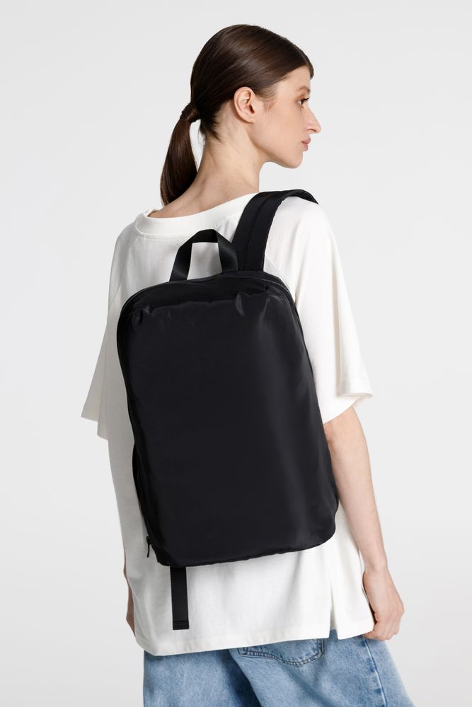 Базовый повседневный рюкзак разработан в рамках единой коллекции одежды и аксессуаров и легко комбинируется с ее элементами. Специально спроектированные лекала и технологии пошива открывают простор для любых вариантов кастомизации и нанесения изображений. На видимой части изделий нет лейблов с айдентикой бренда,            а название бренда с уходника легко удалить.