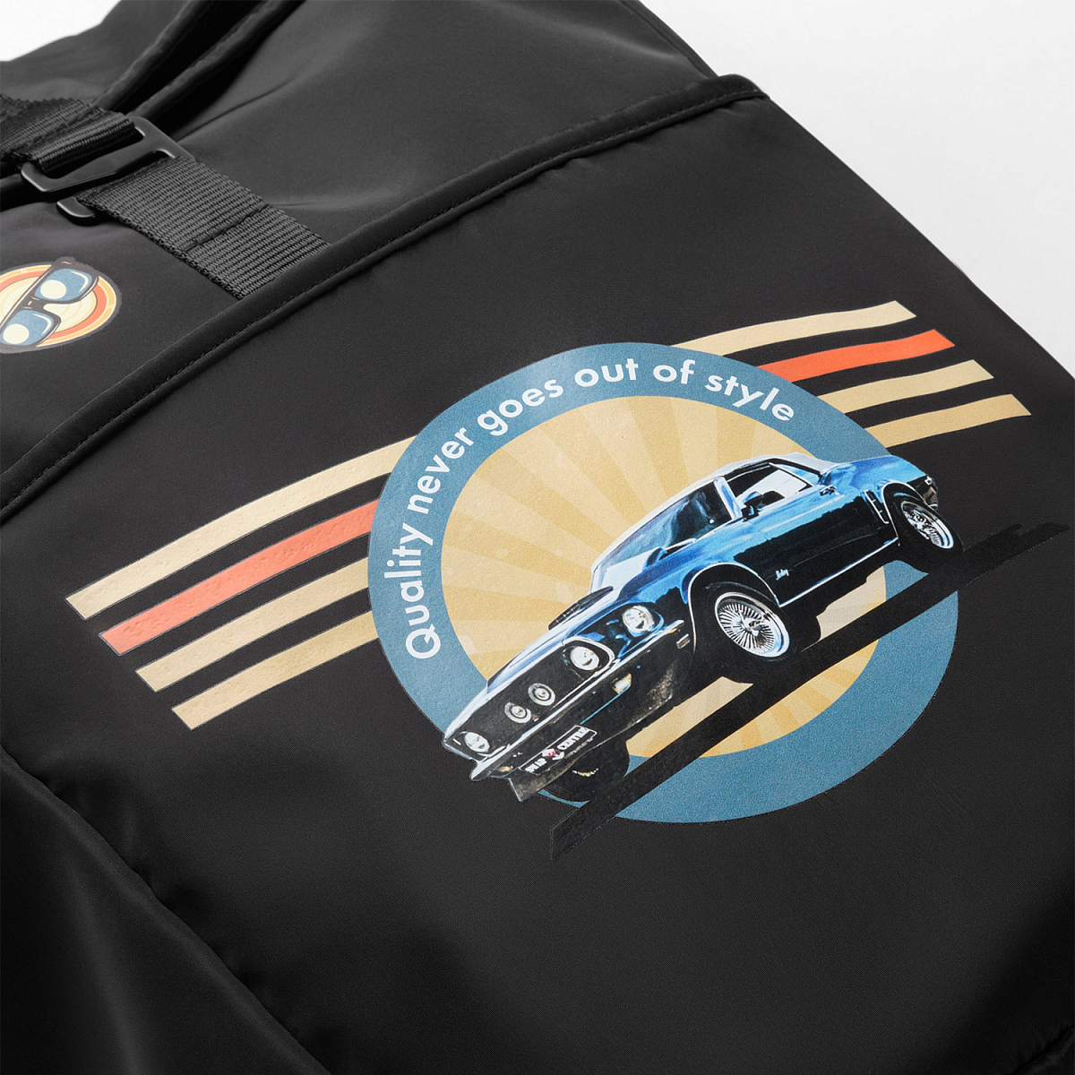 Рюкзак имеет вместительное внутреннее отделение, с внешней стороны рюкзака предусмотрен удобный карман на молнии. С двух сторон рюкзака также располагаются два внешних кармана — для зонта или бутылки с водой. Рюкзак имеет две мягкие регулируемые лямки, которые равномерно распределяют вес содержимого по всей спине и плечам. В основном отделении расположен карман для 15,6-дюймового ноутбука и кармашек для мелочей на молнии.
