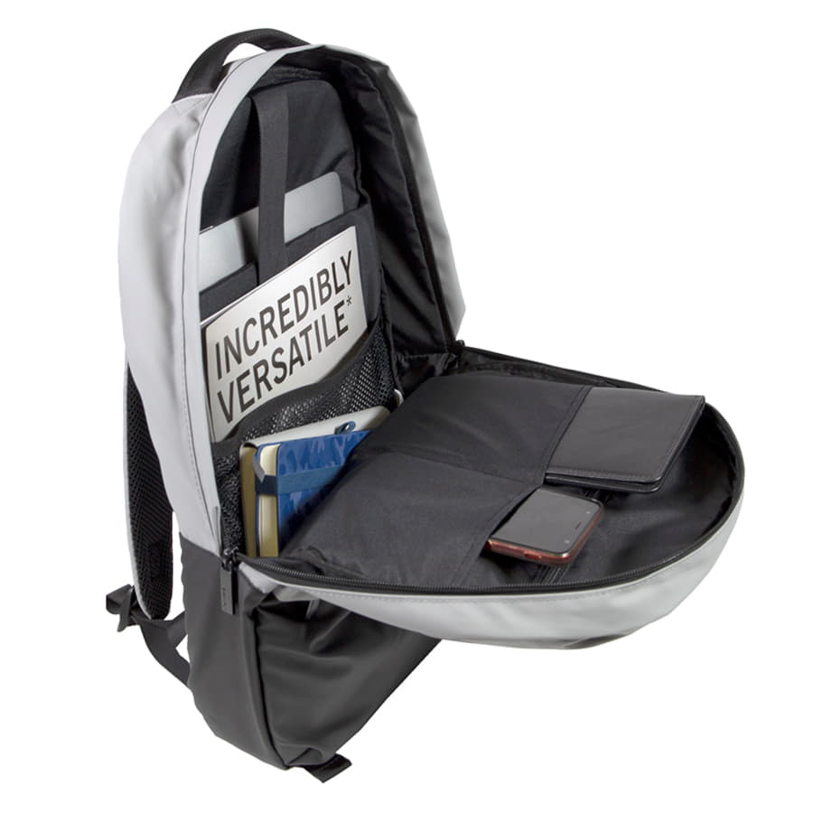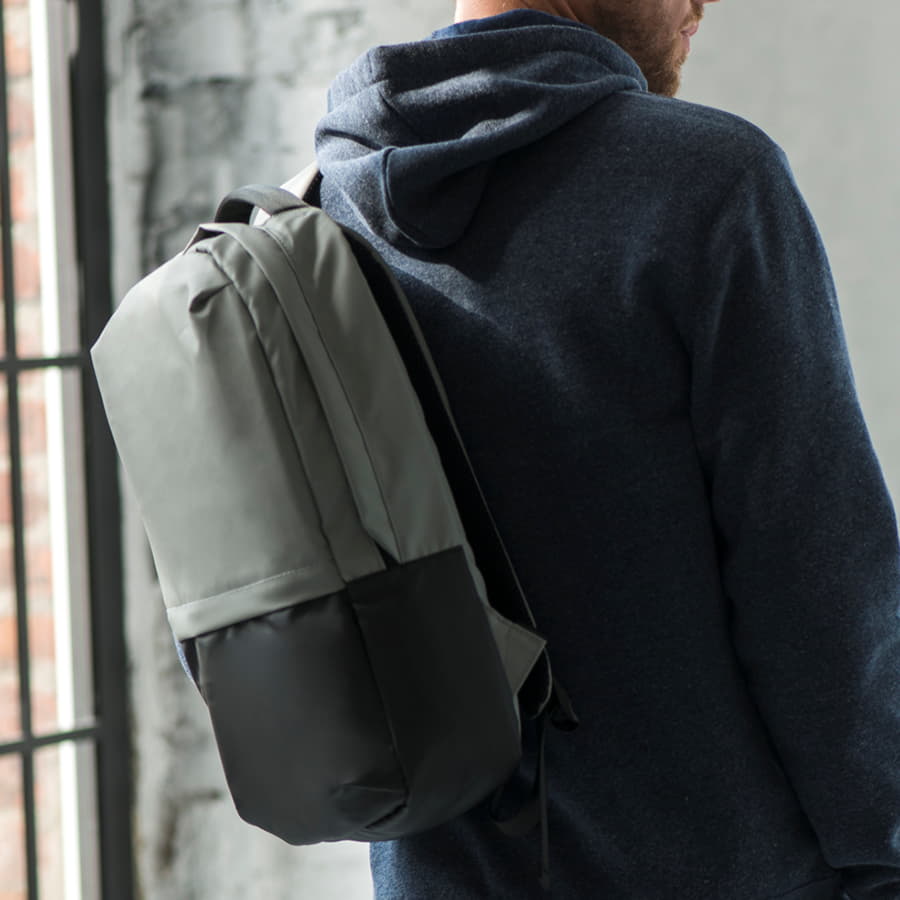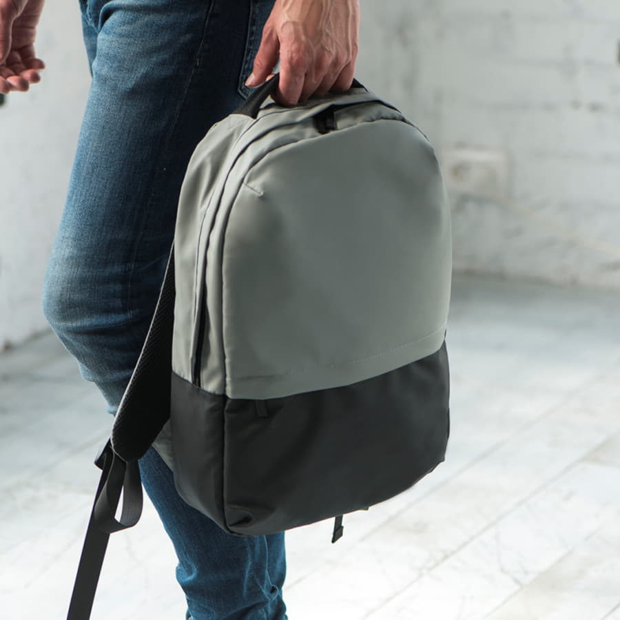 Основной цвет: близкий к Pantone 423 C, нижняя часть: цвет, близкий к Pantone 426 C · Основная ткань: 100% полиэстер c PU покрытием, подкладка: 100% полиэстер · Объём: 13 литров · Вмещает ноутбук 15,6" Описание: · Прочный и водоотталкивающий материал Anti-scratch · Основной отдел на молнии с двумя бегунками и планкой, защищающей от попадания влаги внутрь · Внешний удобный карман -органайзер на молнии · Внутри укрепленный отдел для ноутбука с защитной тесьмой на липучке · Дополнительные карманы для хранения документов · Эргономичные лямки · Укрепленная ручка рюкзака · Лямки прошиты дополнительными стропами в быстро изнашиваемых местах, которые можно отрегулировать по длине и зафиксировать пластиковыми крепежами · Брендированные металлические пуллеры Bag Fly · Жаккардовый логотип Bag Fly внутри · Картонный ярлык Bag Fly · Упаковка: прозрачный пакет