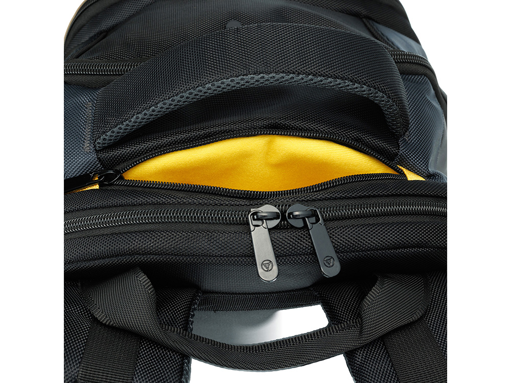 Этот рюкзак создан для тех, кто ценит безупречную организацию пространства. Словно опытный стратег, он предусмотрел всё до мельчайших деталей: от крупных отделений до миниатюрных карманов для мелочей. Изысканный чёрный рюкзак с акцентами солнечного жёлтого цвета подчёркивает ваш безупречный вкус, а продуманная эргономика превращает поиск вещей в удовольствие.