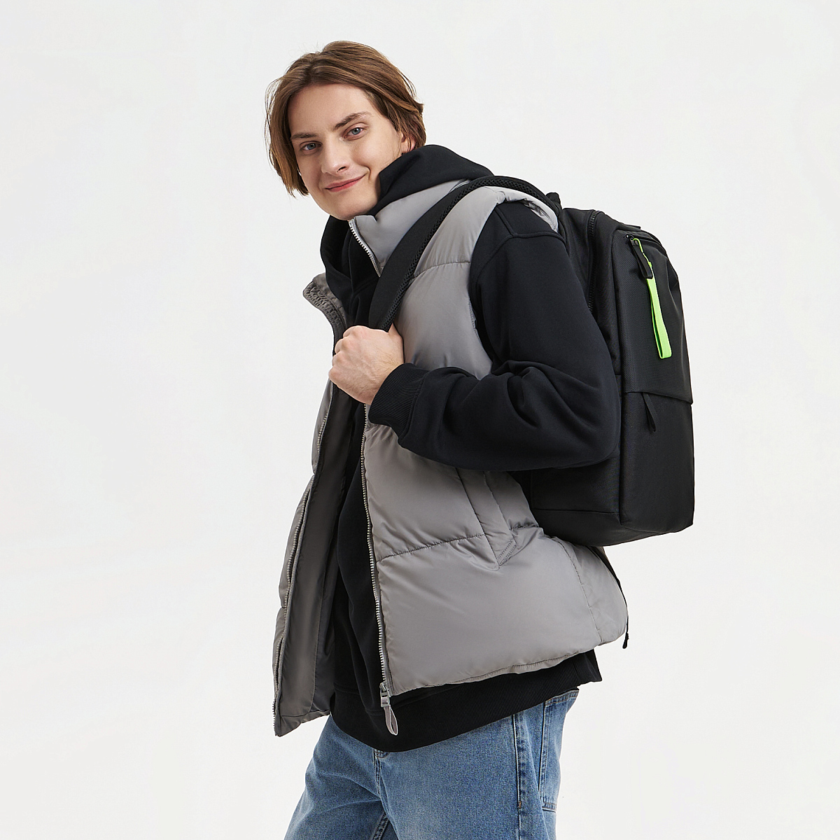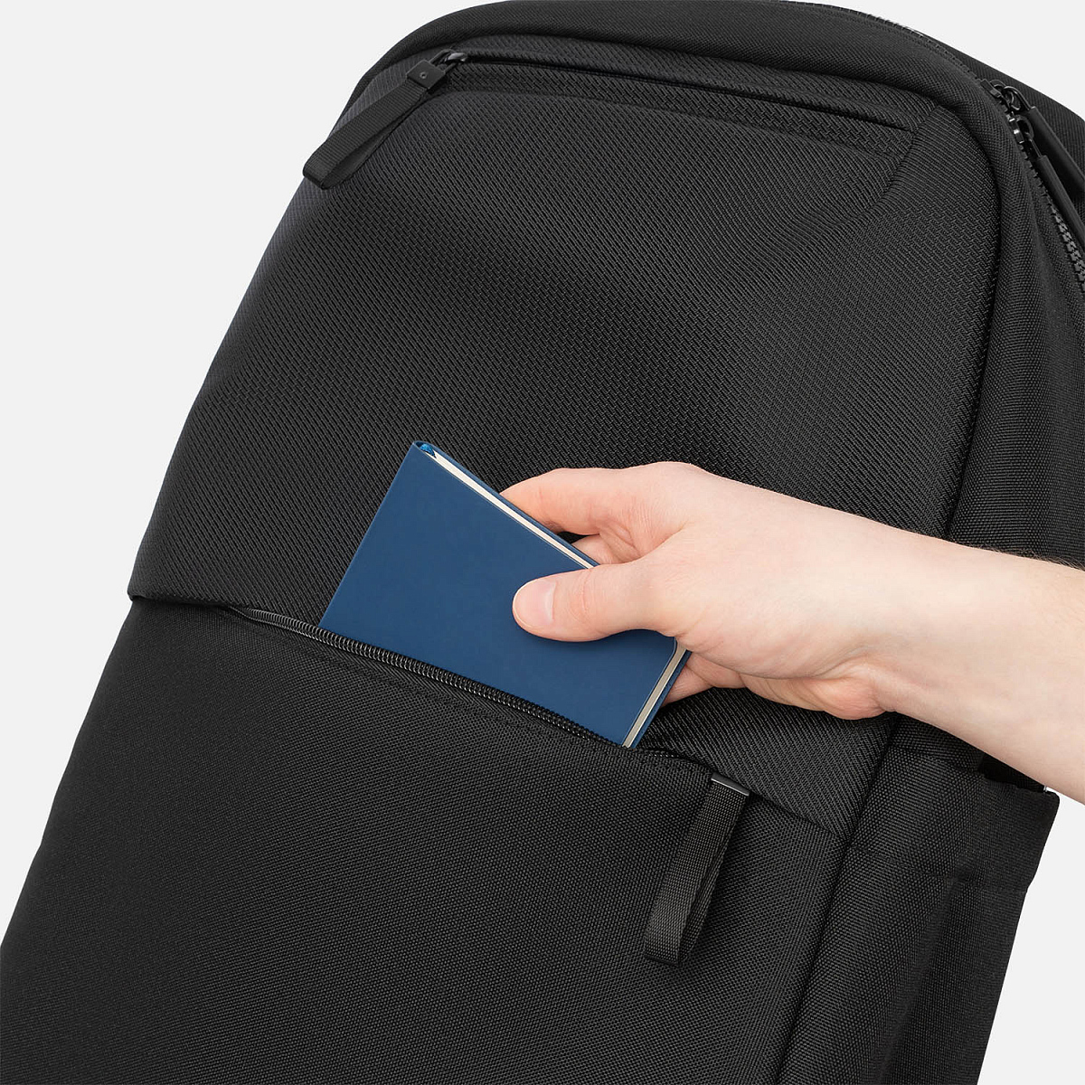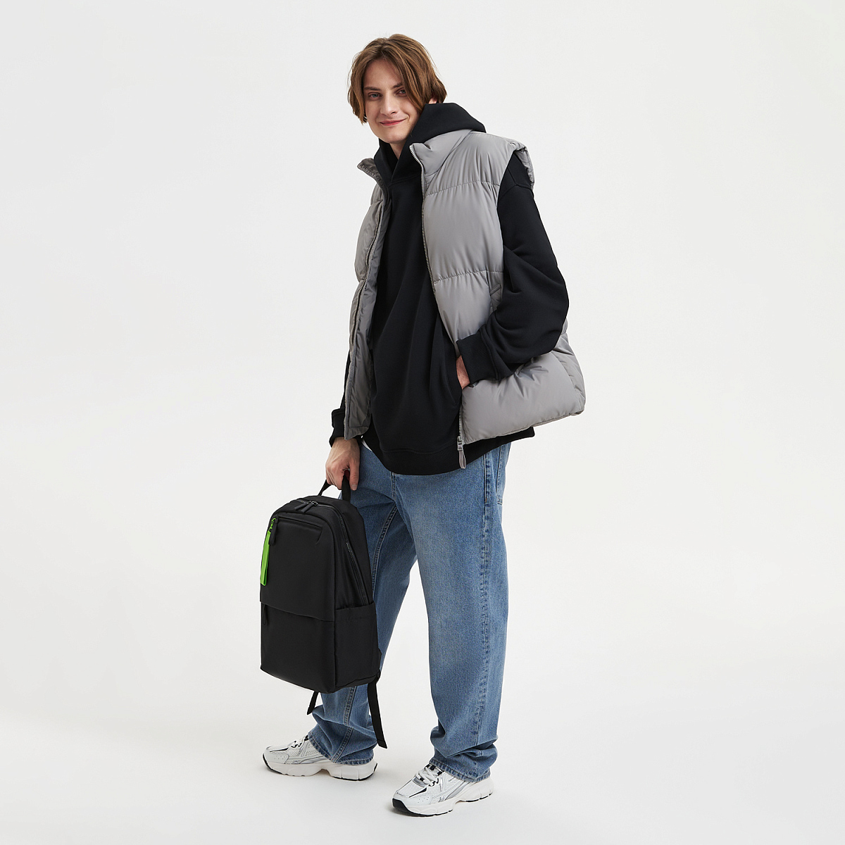 Вместительные передние карманы, один из которых на скрытой молнии, позволяют хранить самые нужные вещи под рукой. Боковые карманы с эластичными фиксаторами надежно удерживают бутылку и другие предметы. Основное отделение оснащено карманом для ноутбука до 15,6” с защитным ремнем; два кармана для мелочей и отдельные отсеки для ручек помогают организовать все необходимое внутри рюкзака.