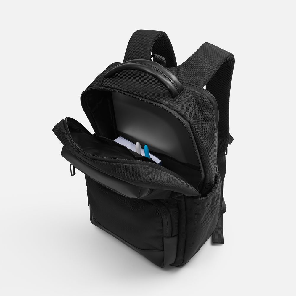 Специальное отделение на молнии с мягкими стенками надежно фиксирует ноутбук, защищая его от ударов и повреждений во время переноски. Основное отделение оснащено удобной панелью‑органайзером, позволяющей структурированно разместить документы и другие необходимые предметы.
