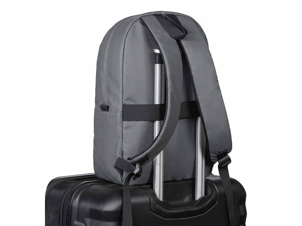 Элегантный легкий городской рюкзак из мягкого приятного на ощупь материала можно использовать для передвижений по городу, а так же в поездках, для чего на спинке предусмотрен ремень для крепления на ручку чемодана. Для удобства и компактного хранения содержимого снаружи расположены 2 передних кармана на молниях и 2 боковых кармана. Внутри уплотненный карман для ноутбука. Стильная подкладка в полоску в тон цвета внешнего материала делает рюкзак модным аксессуаром. Благодаря водостойкому материалу и молниям содержимое рюкзака не намокнет под дождем. Лямки регулируются по длине.