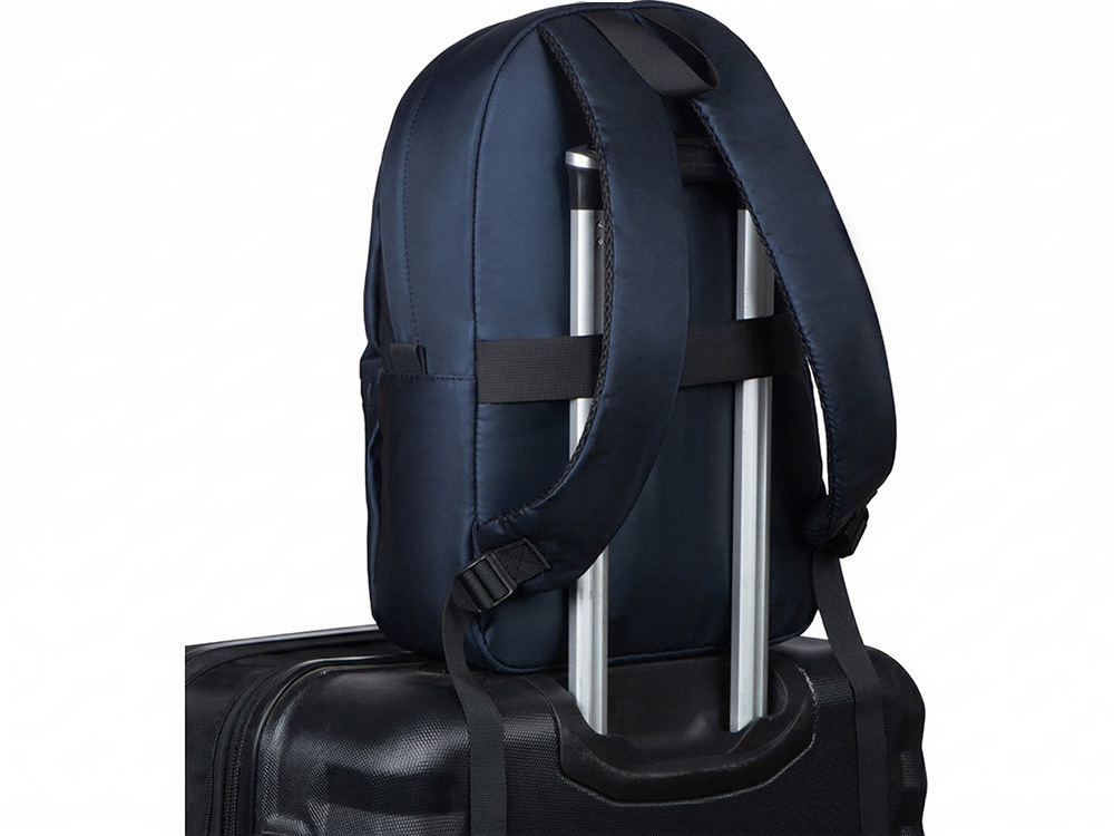 Элегантный легкий городской рюкзак из мягкого приятного на ощупь материала можно использовать для передвижений по городу, а так же в поездках, для чего на спинке предусмотрен ремень для крепления на ручку чемодана. Для удобства и компактного хранения содержимого снаружи расположены 2 передних кармана на молниях и 2 боковых кармана. Внутри уплотненный карман для ноутбука. Стильная подкладка в полоску в тон цвета внешнего материала делает рюкзак модным аксессуаром. Благодаря водостойкому материалу и молниям содержимое рюкзака не намокнет под дождем. Лямки регулируются по длине.
