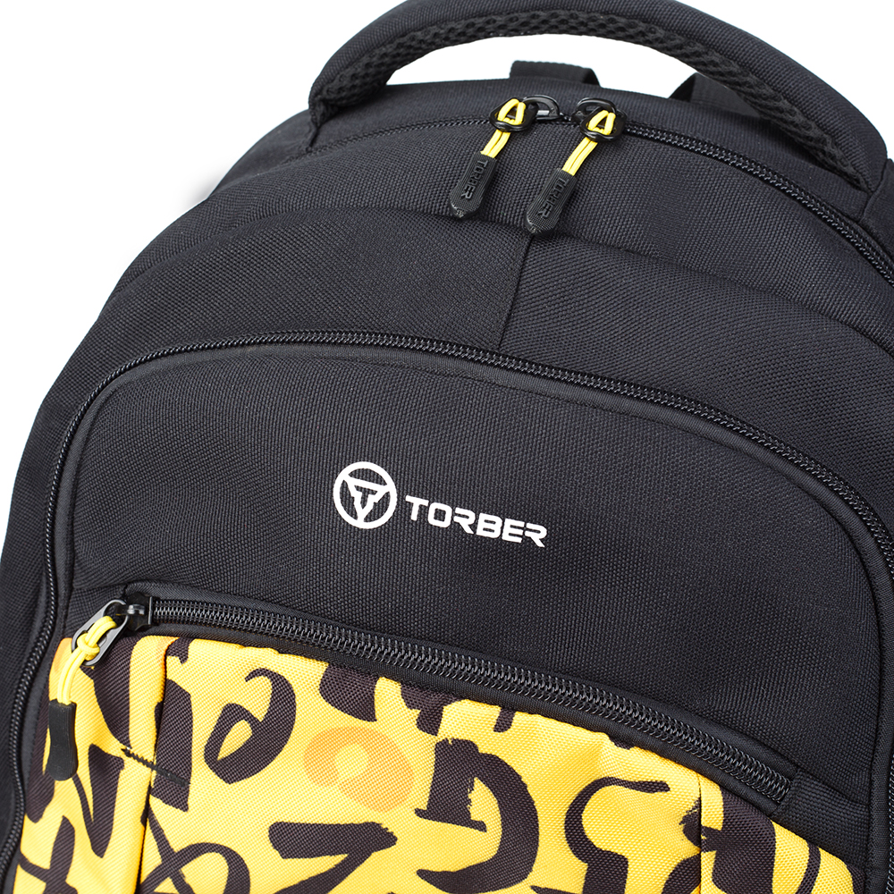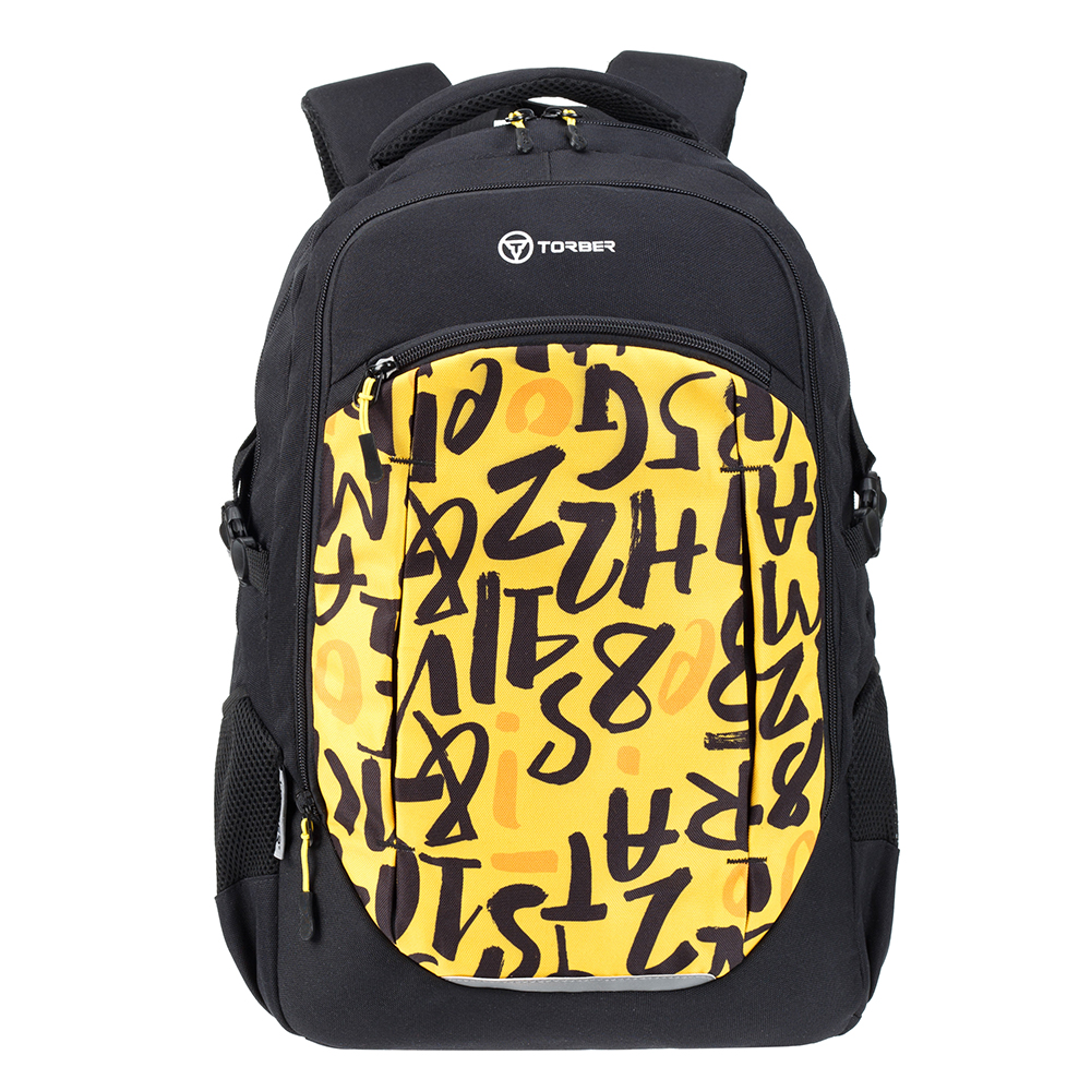 Рюкзак TORBER CLASS X, черно-желтый с принтом "Буквы", полиэстер 900D, 46 x 32 x 18 см можно заказать в нашей компании по самой доступной цене от 2 340 рублей.