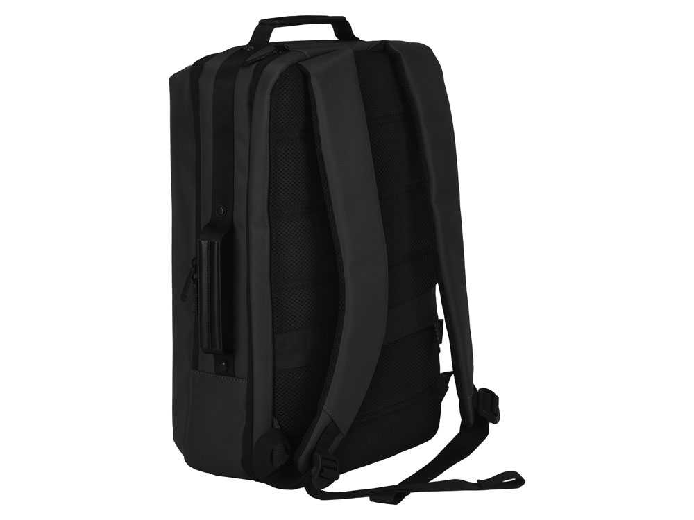 Рюкзак может легко превратится в деловую сумку для командировок, т.к. снабжен дополнительной ручкой для переноски в руке. В комплекте идет съемный металлический шильд под нанесение вашего логотипа.