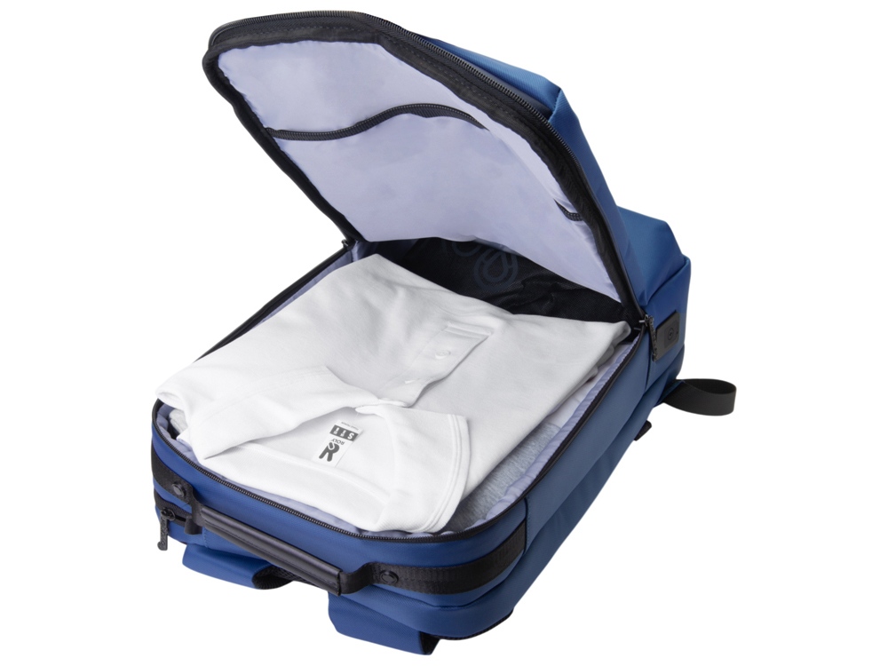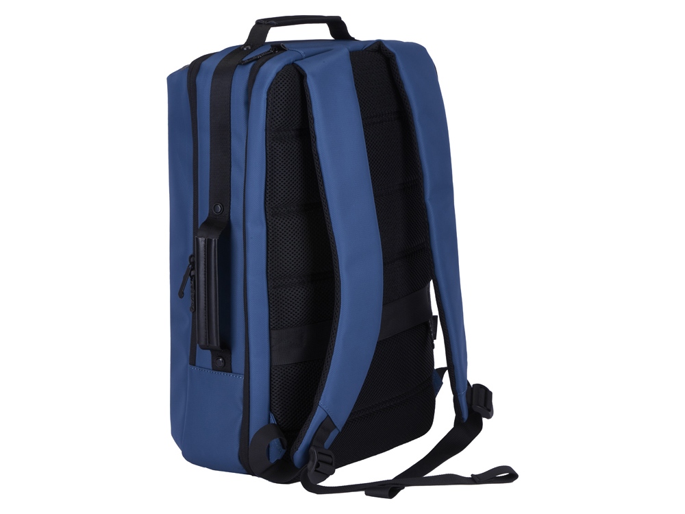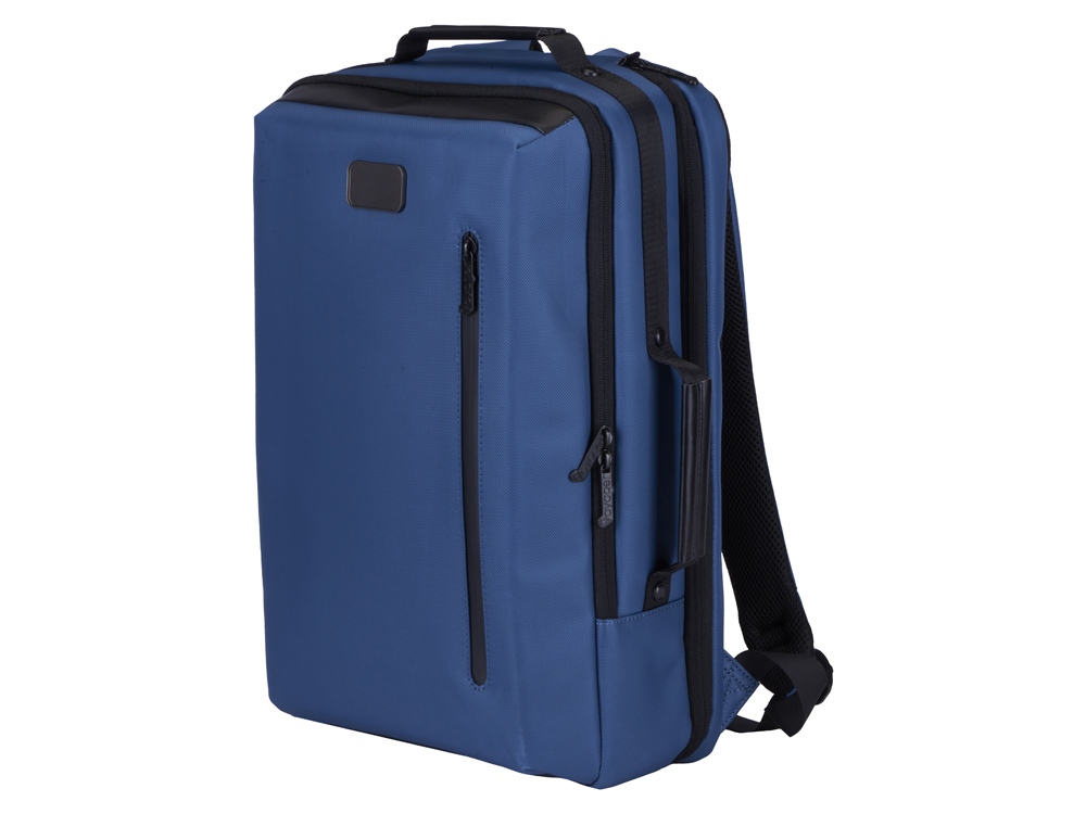 Рюкзак может легко превратится в деловую сумку для командировок, т.к. снабжен дополнительной ручкой для переноски в руке. В комплекте идет съемный металлический шильд под нанесение вашего логотипа.
