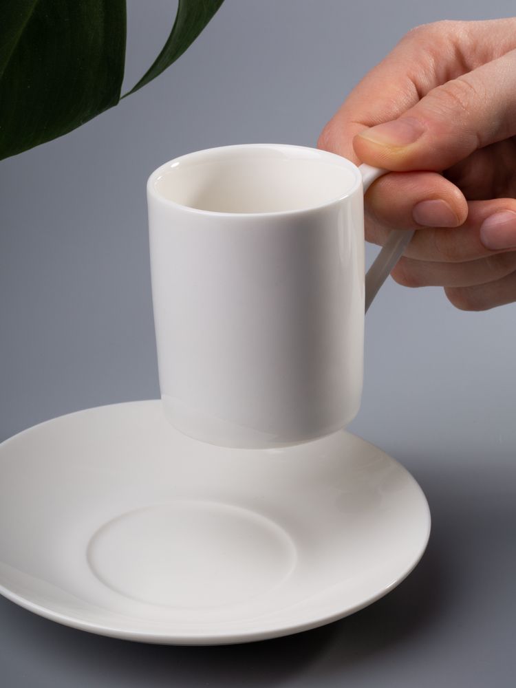 Размер: Чашка: диаметр 5,6 см, высота 6,4 см, ширина с ручкой 8,1 см; блюдце: 12,6х12,6х1,6 см см; упаковка 17,6х18,6х10,3 см
