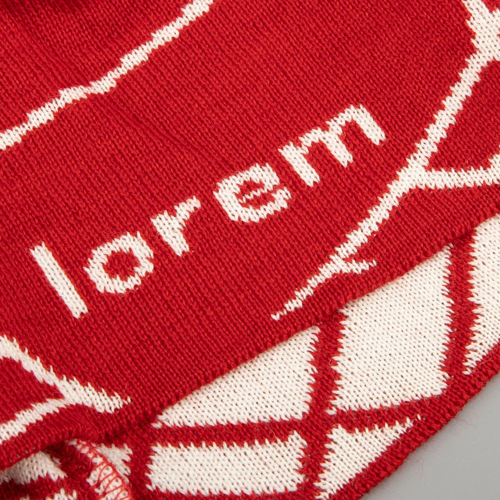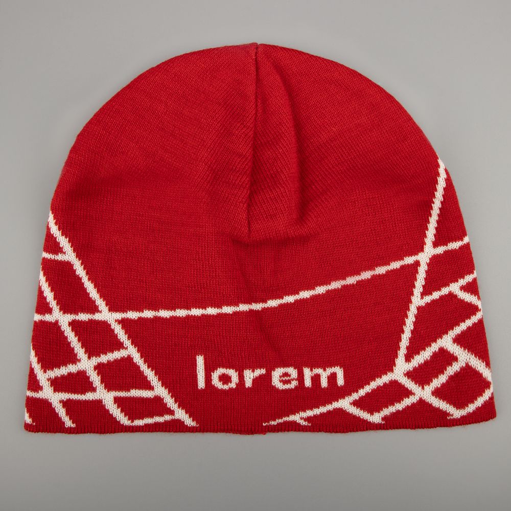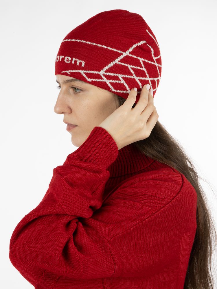Шапка с вывязанным логотипом и индивидуальным рисунком в фирменной цветовой гамме.