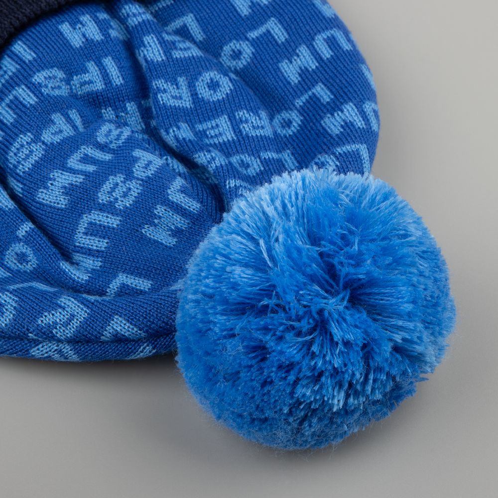 Шапка с вывязанным логотипом и индивидуальным рисунком в фирменной цветовой гамме.