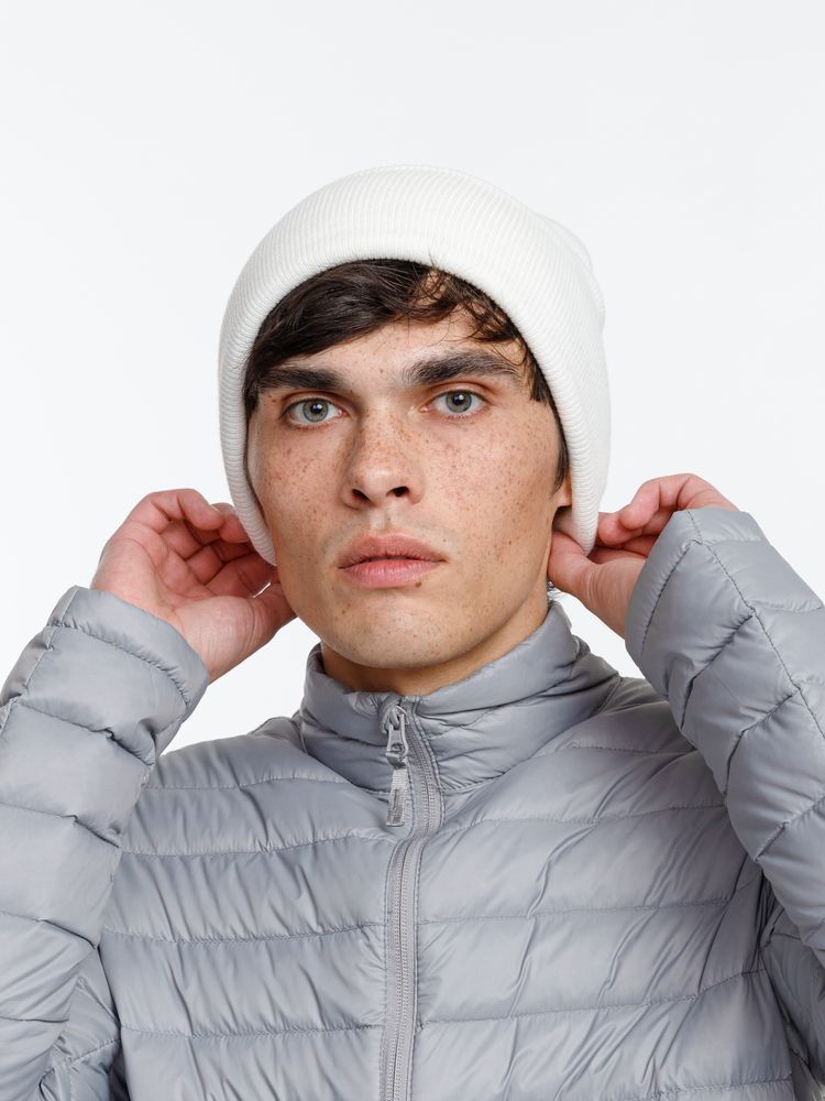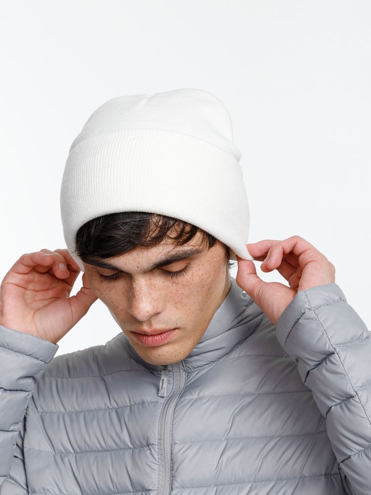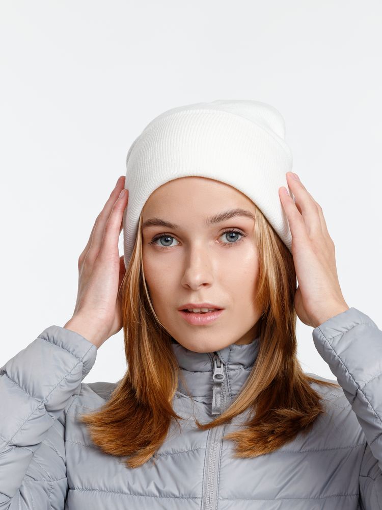 Двухслойная шапка из акриловой пряжи с регулируемым отворотом 7–10 см.
