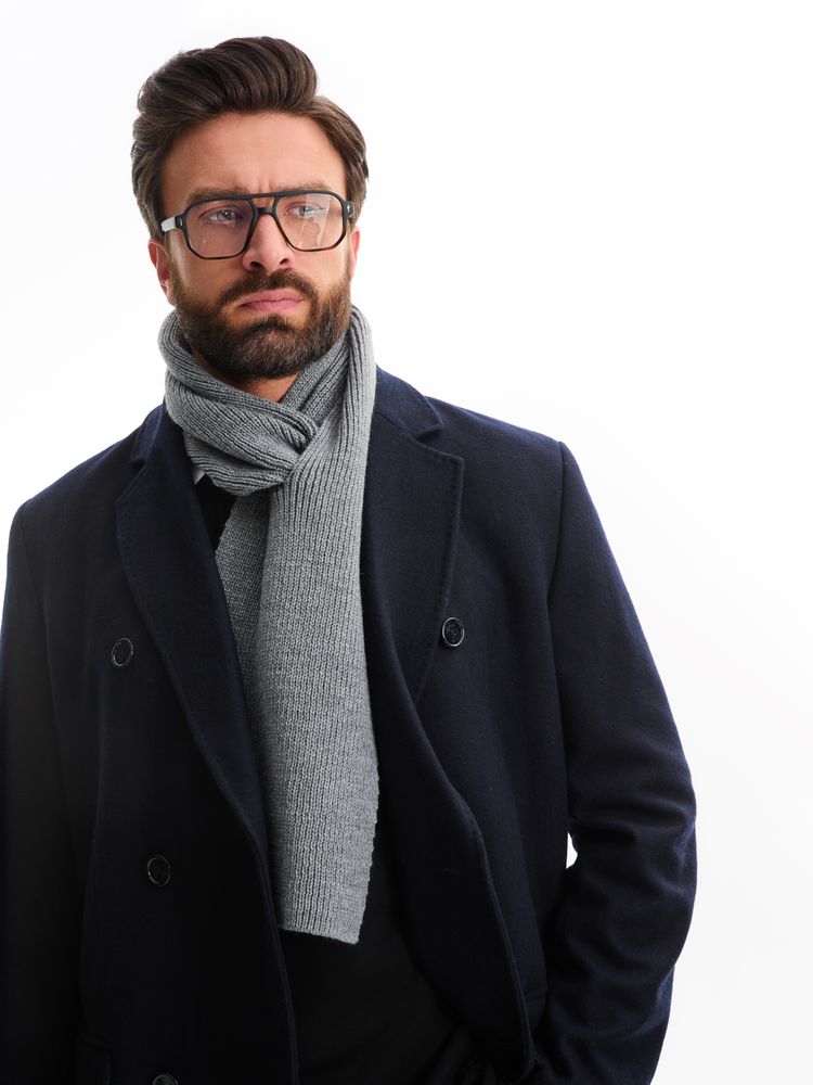 Однослойный шарф фактурной вязки с отверстием для быстрого и удобного завязывания.