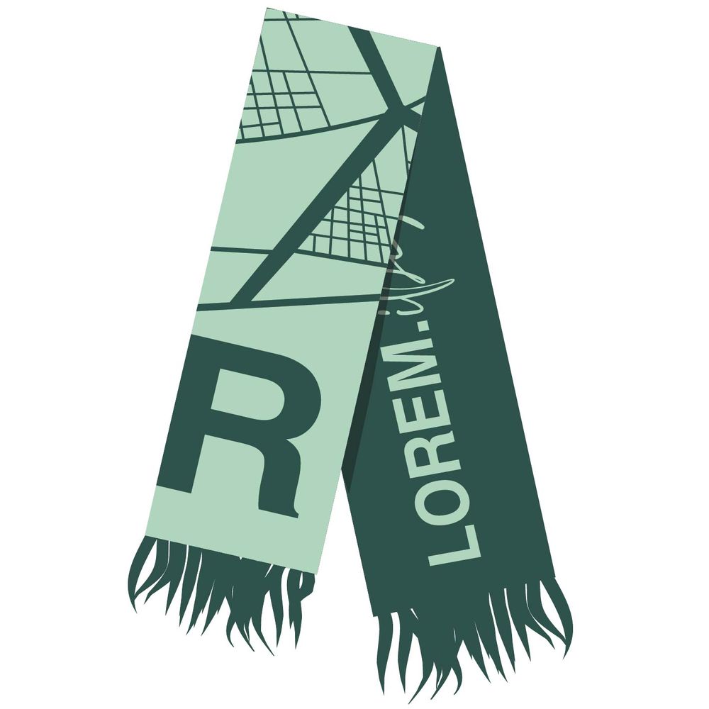 Шарф с вывязанным логотипом и индивидуальным рисунком в фирменной цветовой гамме.