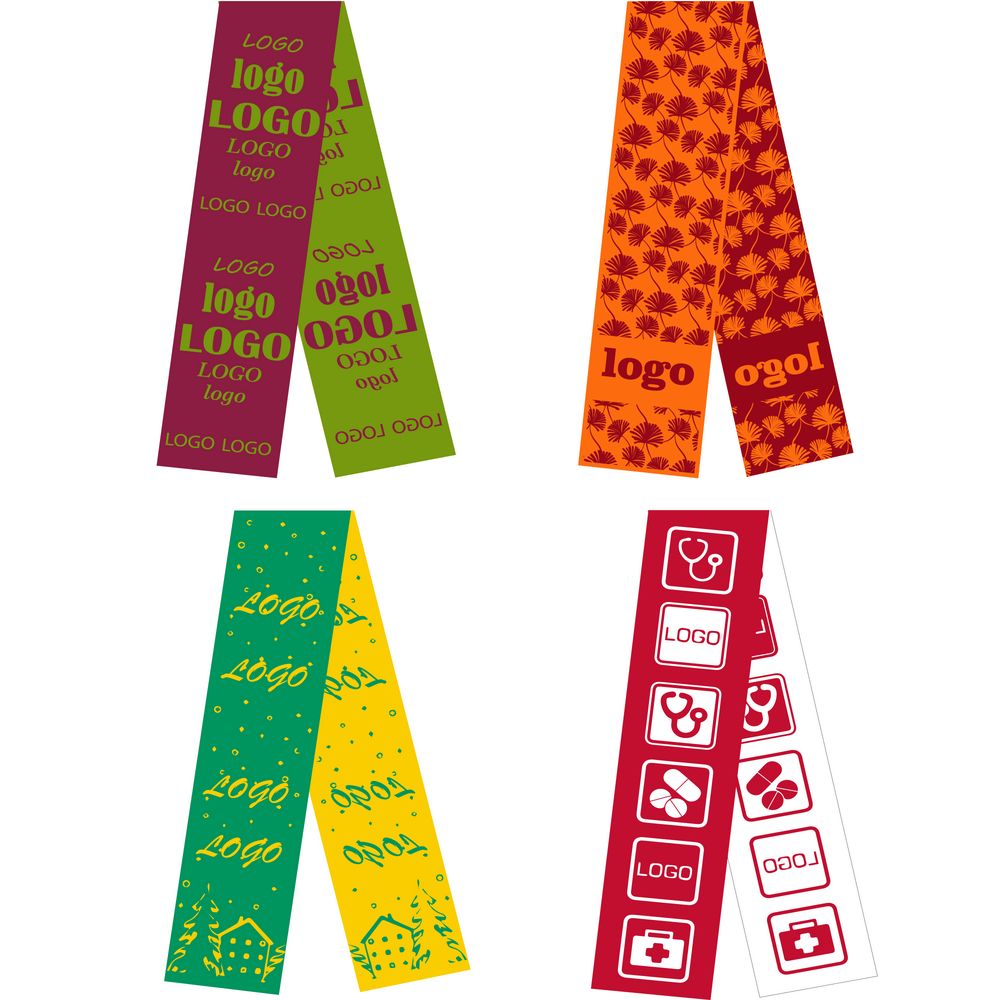 Шарф с вывязанным логотипом и индивидуальным рисунком в фирменной цветовой гамме.