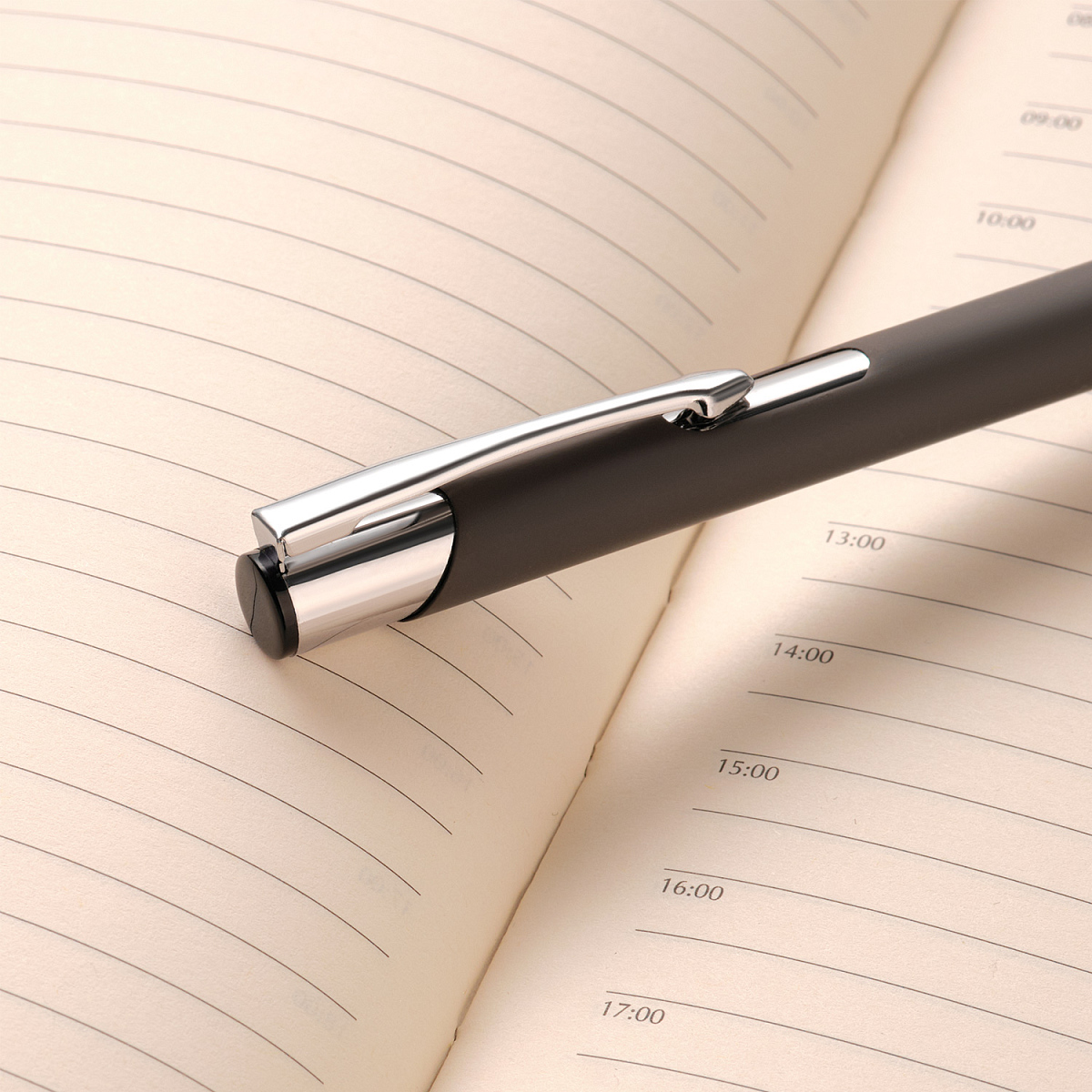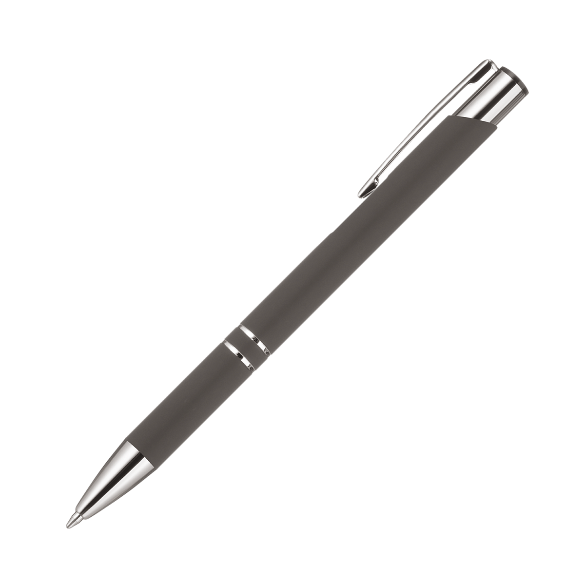 Классическая ручка в шелковистом покрытии Soft Touch станет прекрасным инструментом для письма. Хромированные детали – два декоративных кольца и функциональный надежный клип.