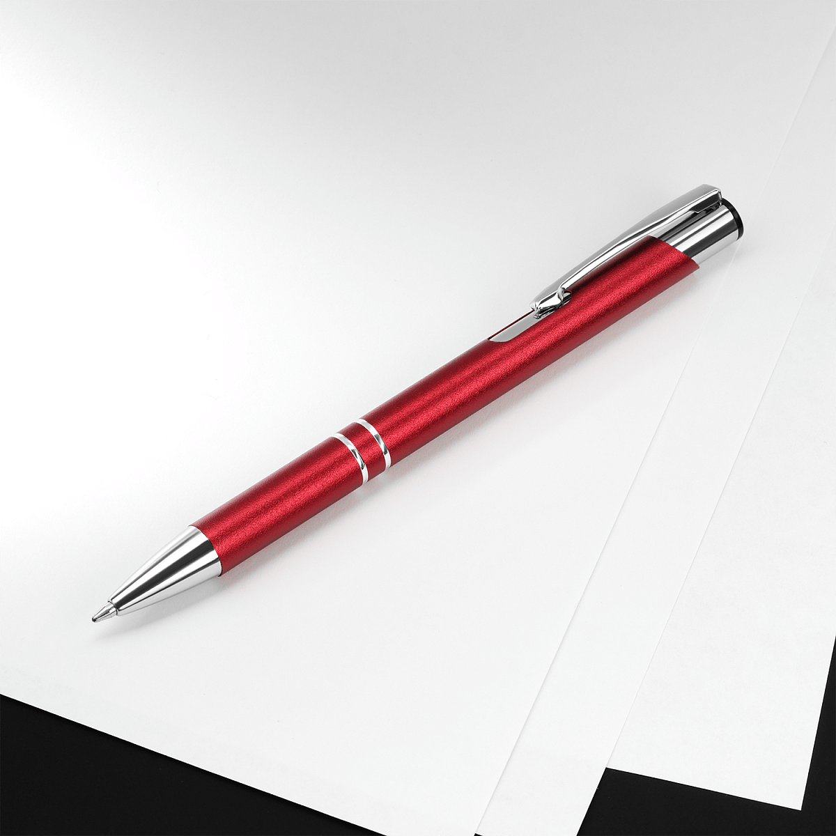 Удобная ручка с матовым покрытием корпуса и эффектными хромированными элементами станет красивым и полезным бизнес-сувениром.
