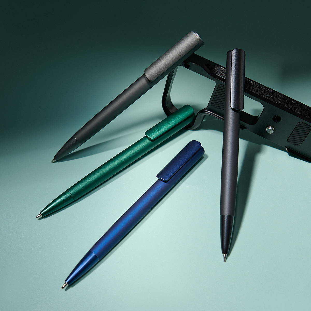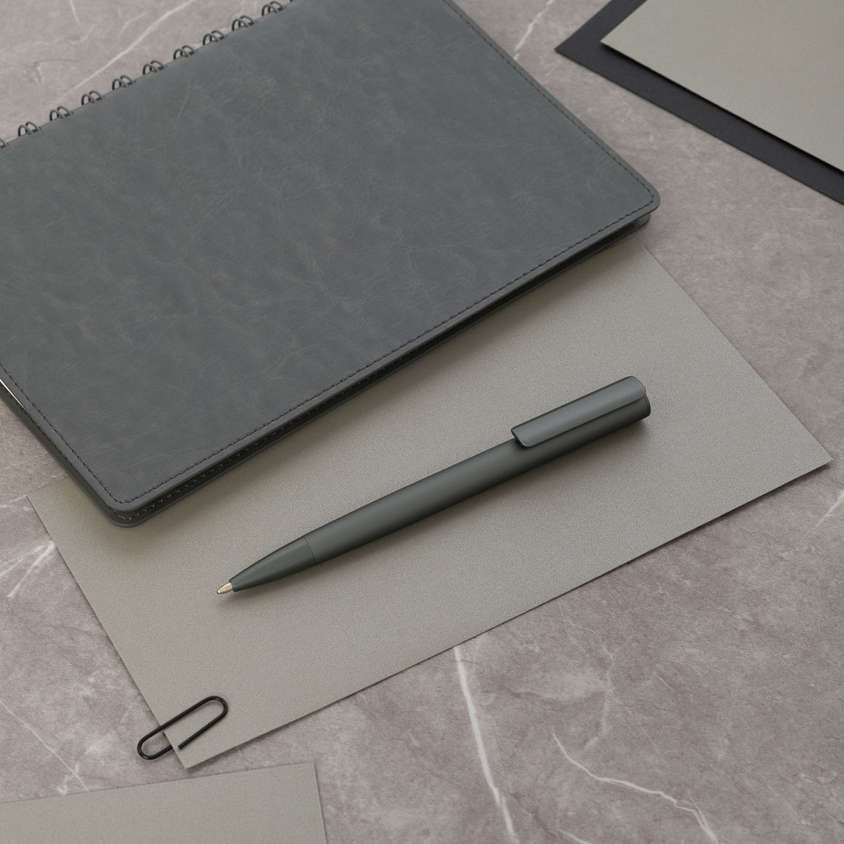 Минималистичный дизайн корпуса эффектно дополнен покрытием Soft Touch metallic, которое удачно гармонирует с металлик деталями. Стержень легко выдвигается благодаря нажимному механизму клипа-слайдера, ручка не скользит в руке и комфортно ощущается при письме за счет покрытия. Плавно пишущие синие чернила Documental (Германия) обеспечивают качественное и мягкое письмо.
