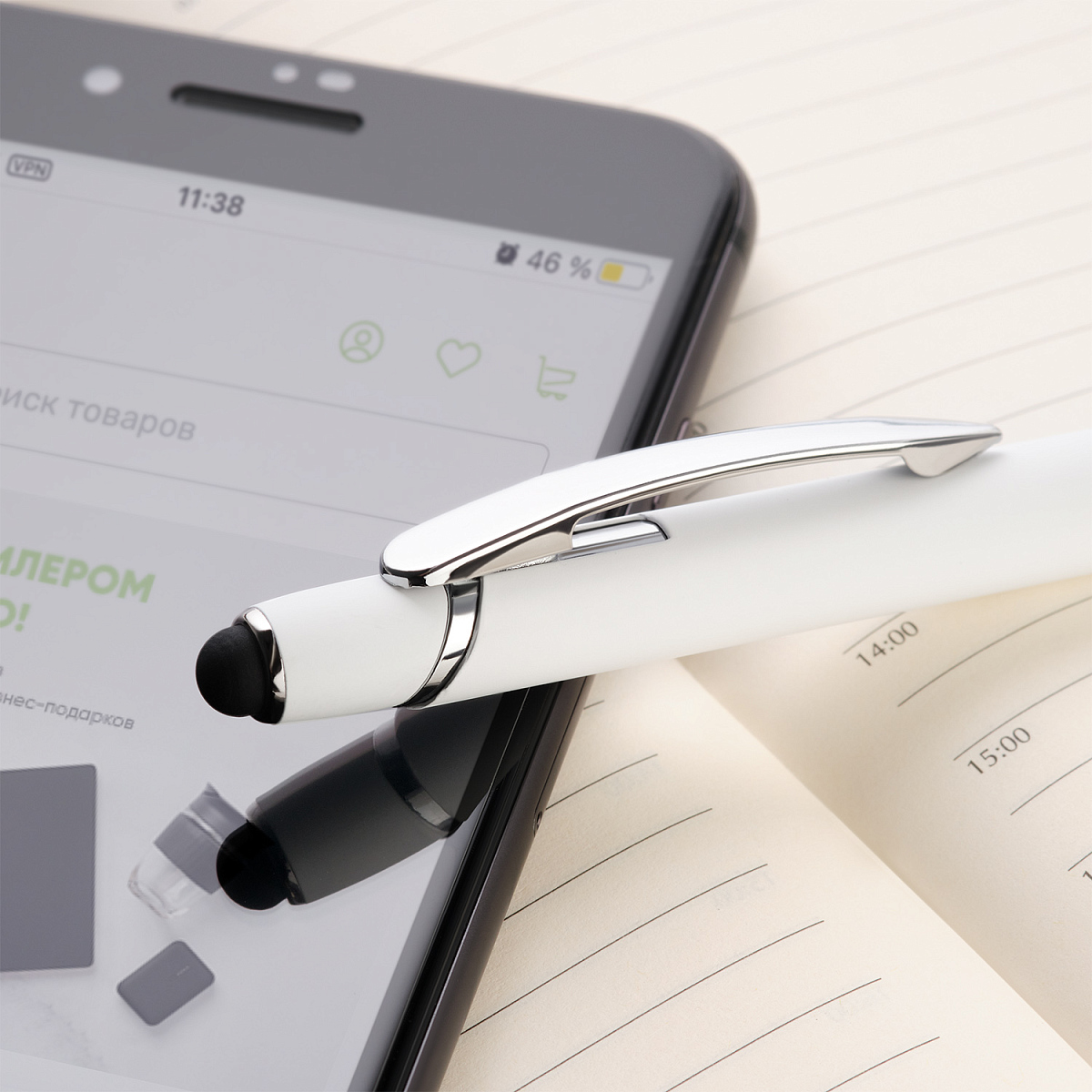 Отделка: хромированные детали, функциональный, надежный клип, оснащен стилусом для работы с сенсорными экранами