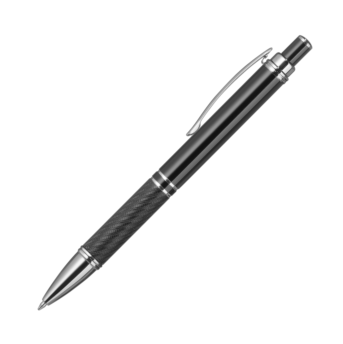Элегантная шариковая ручка с ярким глянцевым корпусом и хромированными деталями.