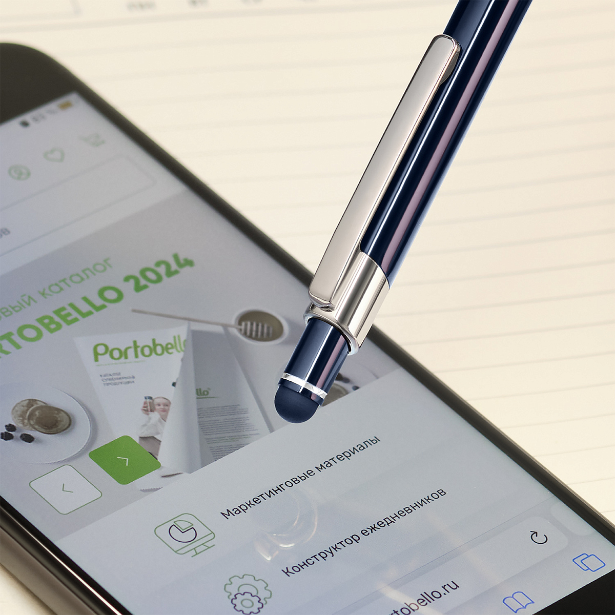 Тонкая, идеально сбалансированная ручка приятно лежит в руке. Оснащена стилусом для работы с сенсорными экранами.
