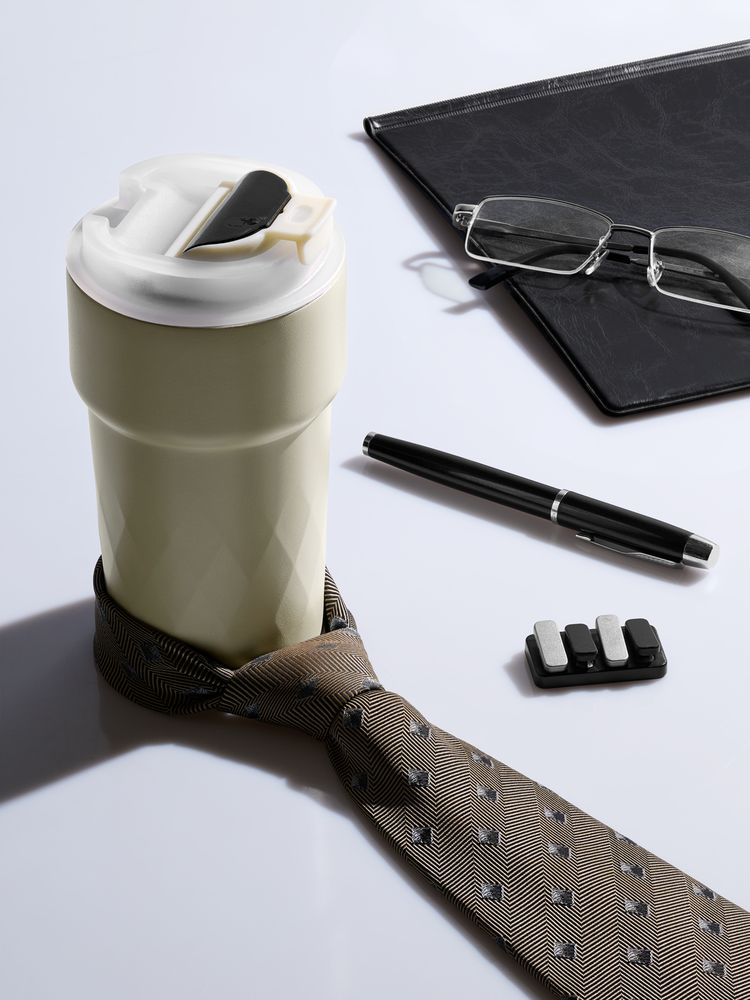 Смарт-термостакан в металлическом корпусе с легким рельефом.