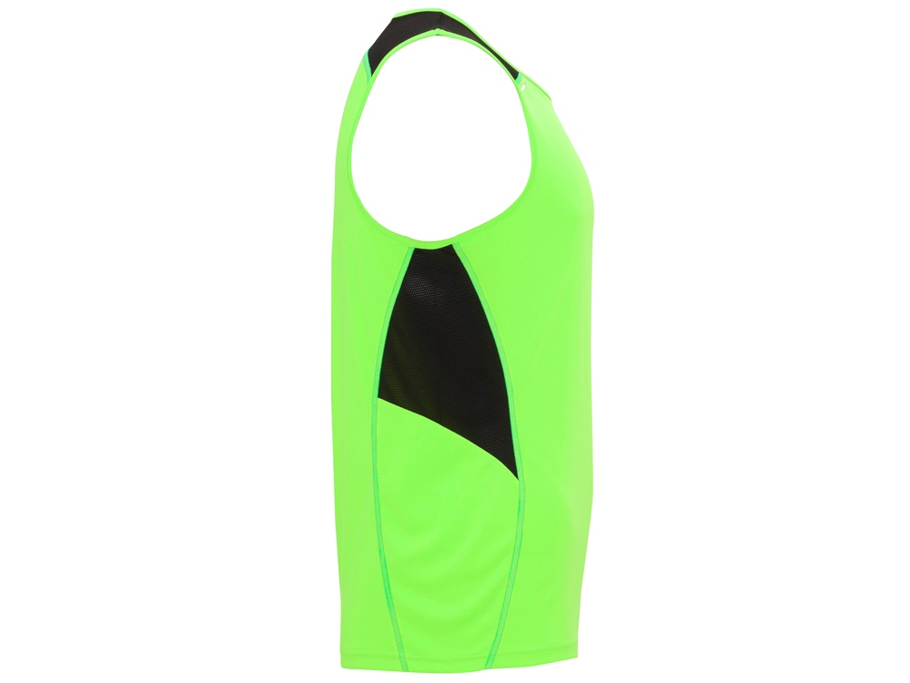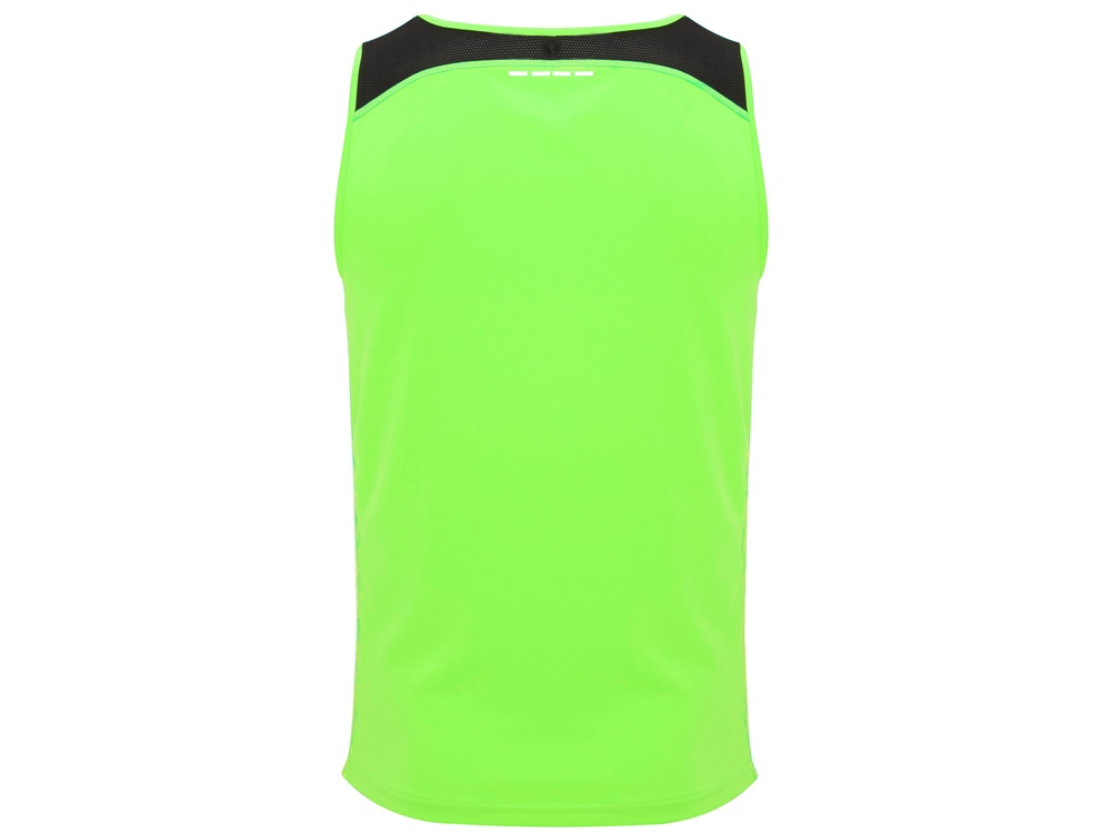 Спортивная майка со светоотражающими деталями. Круглый вырез горловины укреплен декоративной строчкой. Комбинация двух полиэстеровых полотен: основное полотно интерлок, боковые и верхние вставки из микроперфорированного полотна для повышенной воздухопроницаемости. Технологичное полотно быстро сохнет.
