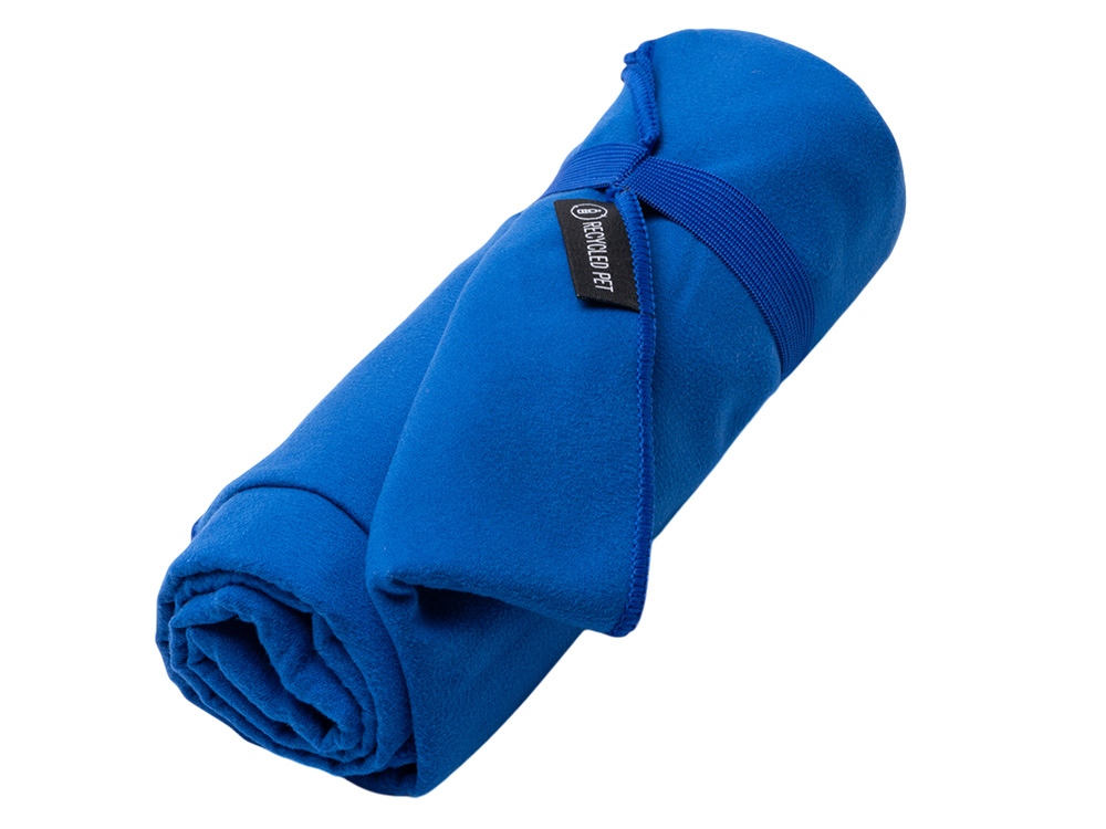 Легкое полотенце из микрофибры, изготовленное из переработанного ПЭТ, с ремешком для складывания и удобной транспортировки.