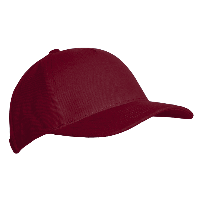 Бейсболка-пятиклинка без лобового шва с изогнутым жестким козырьком. Посадка регулируется ремешком на металлической застежке.