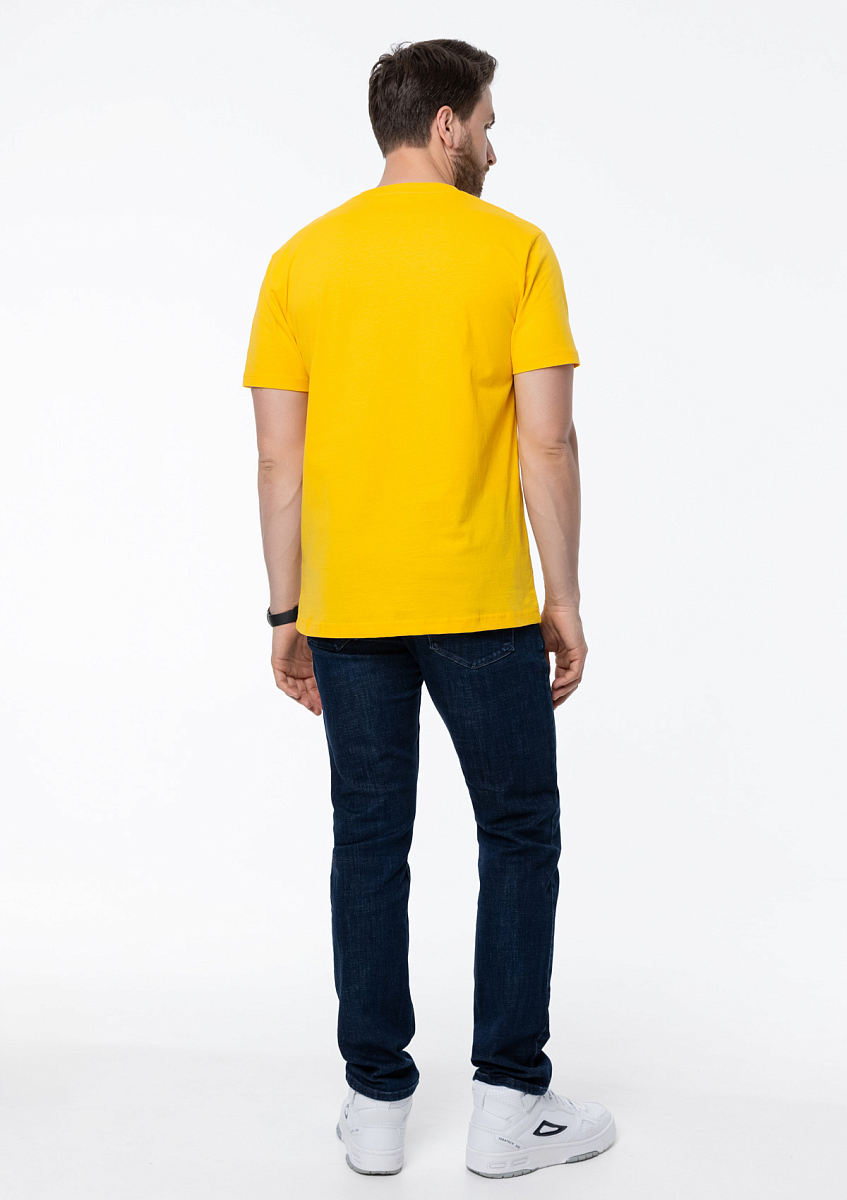 Футболка выполнена из мягкого и прочного полотна из 100% хлопка. Материал обладает отличными влагоотводящими и воздухопроницаемыми свойствами. Ткань легкая и приятная к телу.