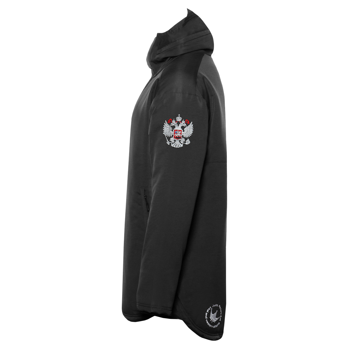 Куртка идеально подходит для спортивных команд; униформы сотрудников для работ на улице, в промышленных зонах и складских помещениях; для повседневной носки. Модель прямого силуэта с воротником стойкой, которая трансформируется в капюшон с флисом внутри и мягкой тканью снаружи. Куртка с втачным рукавом, трикотажным манжетом, застежкой на молнию с ветрозащитной планкой. Два вместительных прорезных кармана с листочками на замке-молнии.