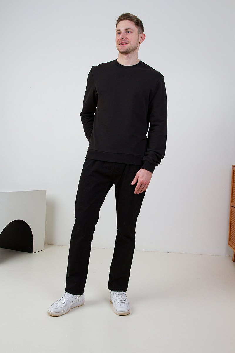 Свитшот выполнен из мягкого и плотного хлопкового футера. Изделие приятное к телу, хорошо пропускает воздух и быстро отводит влагу, не теряет форму со временем.