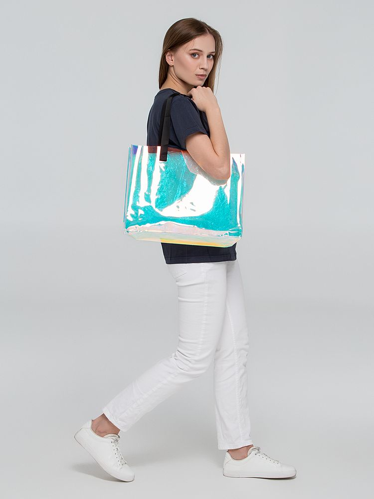 Полупрозрачная сумка с перламутрово-металлическим напылением, которое создает нежные переливчатые блики. С такой сумкой любой день будет казаться солнечным.
