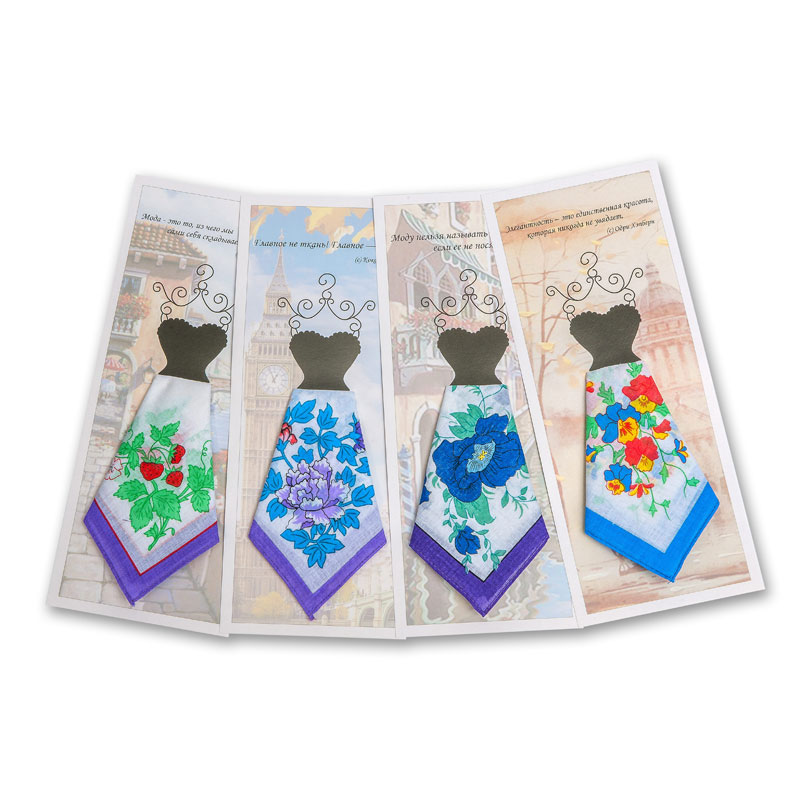 Серия сувенирных женских платков с большим выбором печатных рисунков.