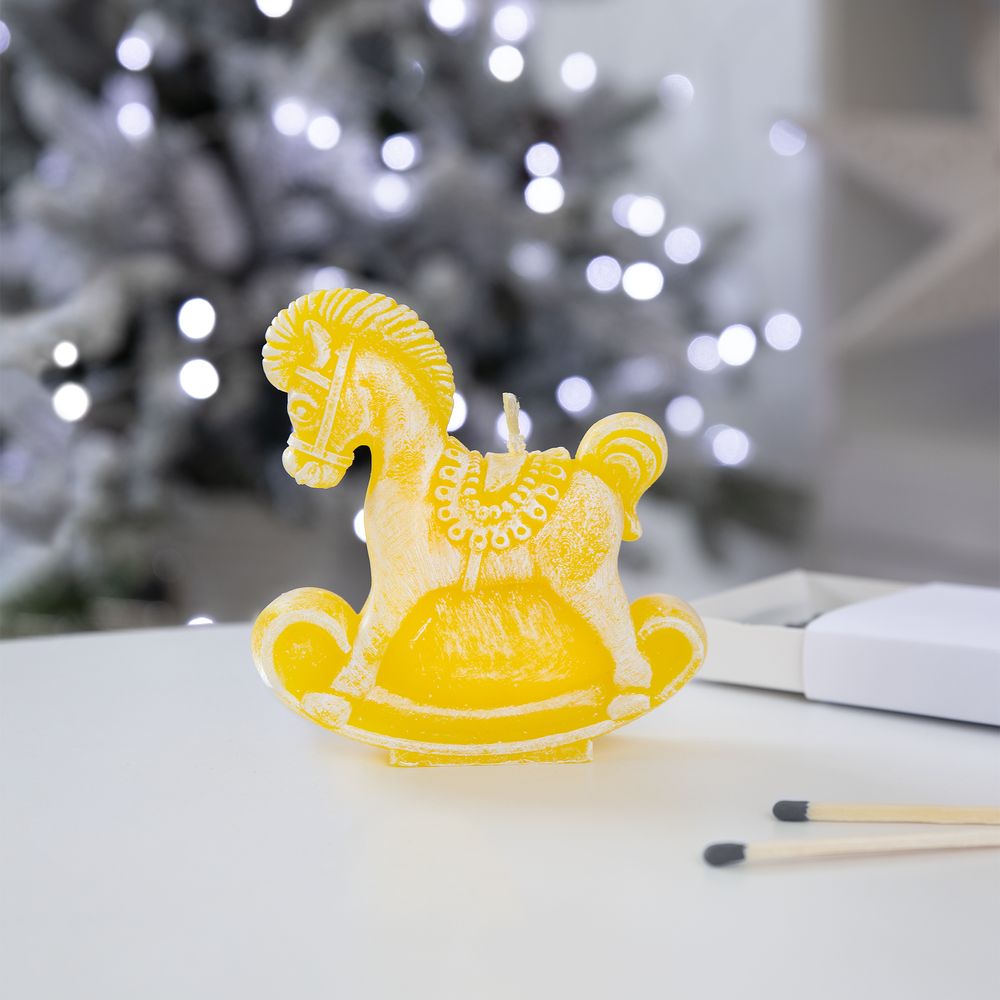 Свеча фигурная «Лошадка-качалка», желтая можно заказать в нашей компании по самой доступной цене от рублей.
