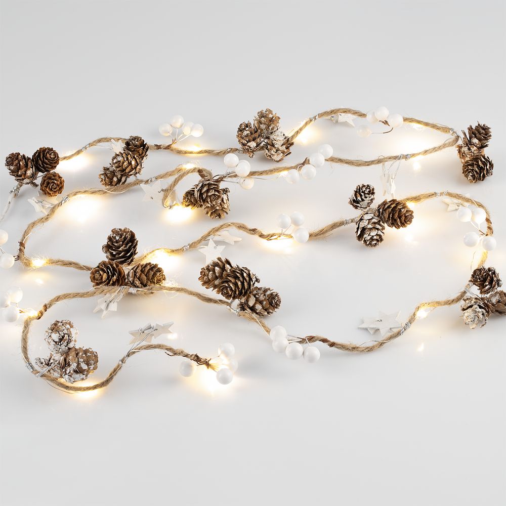 Одни из главных компонентов зимы и зимних праздников в стильном и милом оформлении гирлянды Cones and Berries — тот случай, когда детали решают все. Гирлянда актуальна и как самостоятельный вариант декора, и в качестве традиционного украшения елки.