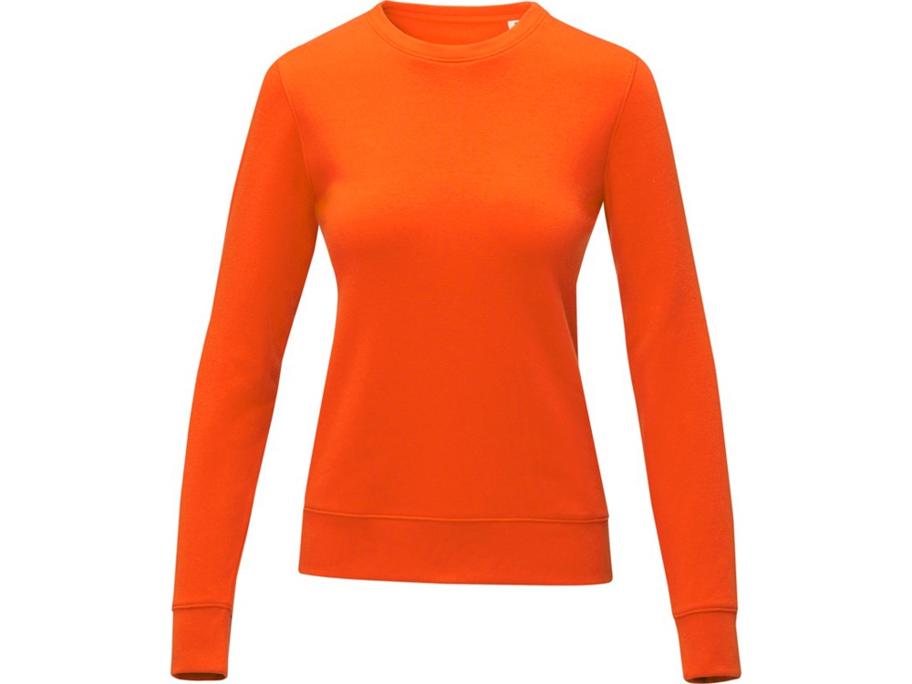Женский свитер Zenon с круглым вырезом. Основная этикетка, которую можно оторвать или отрезать, без неудобных пришитых ярлыков. Круглый вырез. Воротник из гладкого трикотажа. С манжетами из гладкого трикотажа в рубчик. С подшивкой из гладкого трикотажа в рубчик. Внутренняя сторона покрыта ворсом. Самоклеящаяся лента на воротнике. Придающие форму швы и зауженная талия для ровного прилегания. Трикотаж 50% Хлопок, 50% Полиэстер, 240 g/m2.