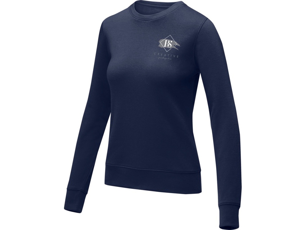 Женский свитер Zenon с круглым вырезом. Основная этикетка, которую можно оторвать или отрезать, без неудобных пришитых ярлыков. Круглый вырез. Воротник из гладкого трикотажа. С манжетами из гладкого трикотажа в рубчик. С подшивкой из гладкого трикотажа в рубчик. Внутренняя сторона покрыта ворсом. Самоклеящаяся лента на воротнике. Придающие форму швы и зауженная талия для ровного прилегания. Трикотаж 50% Хлопок, 50% Полиэстер, 240 g/m2.