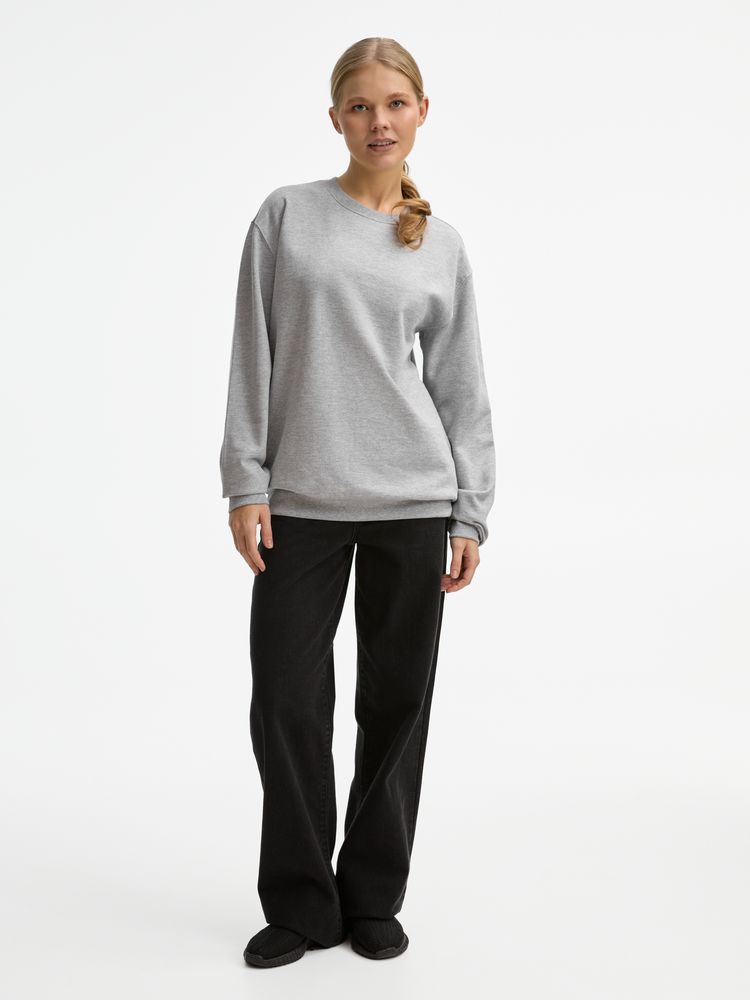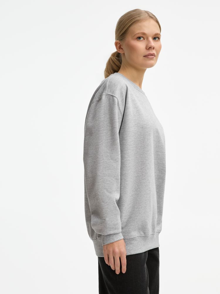 Свитшот унисекс из хлопка и переработанного полиэстера с круглым вырезом и втачным рукавом.