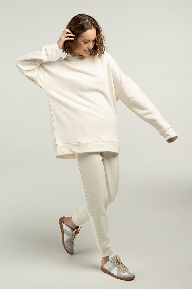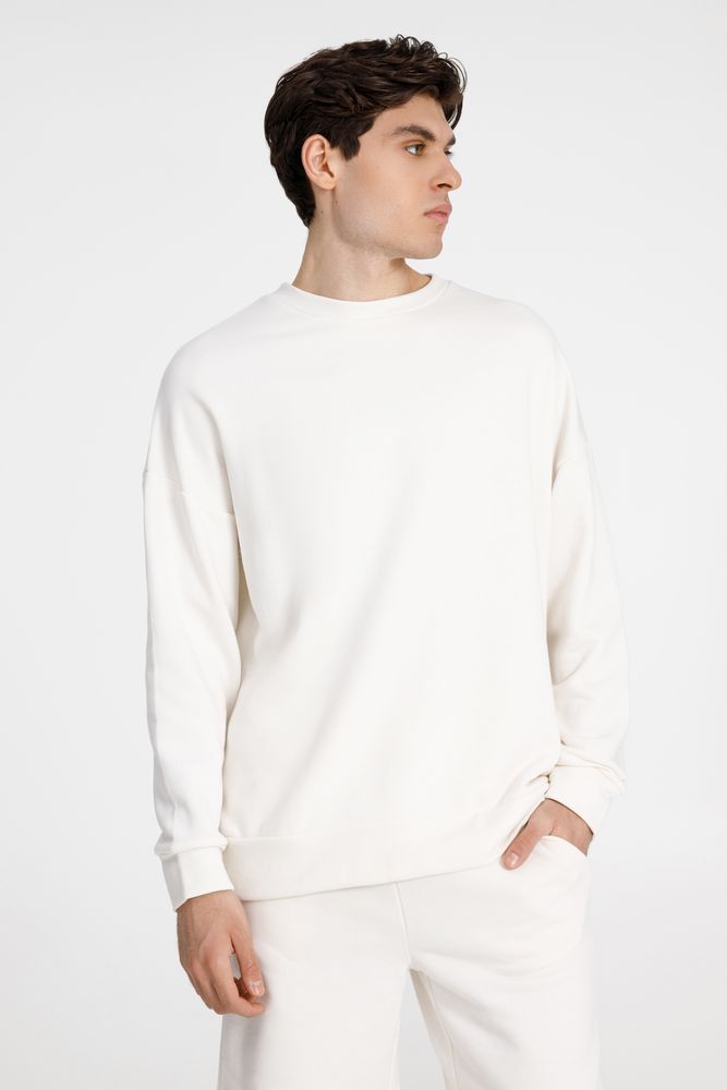 Свитшот унисекс свободной посадки со спущенным плечом.