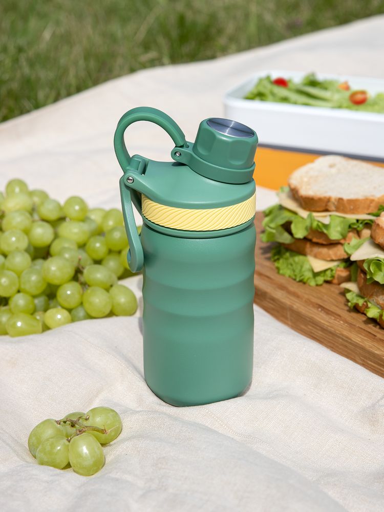 - Конструкция с двойными стенками и вакуумной изоляцией сохраняет содержимое холодным до 24 часов, горячим — до 12 часов