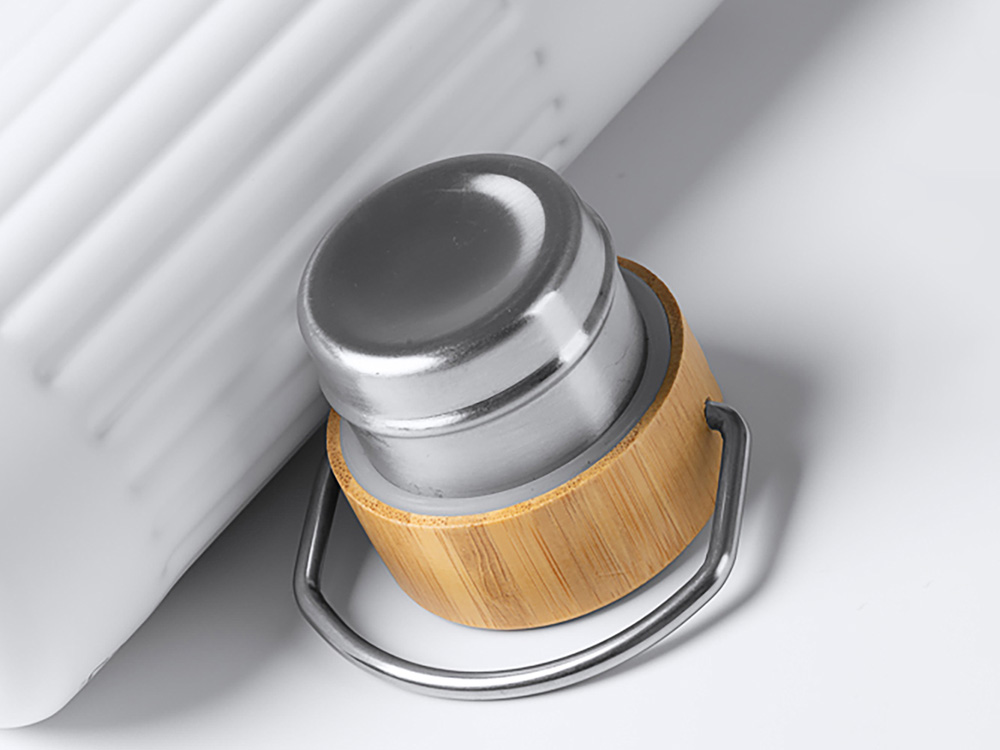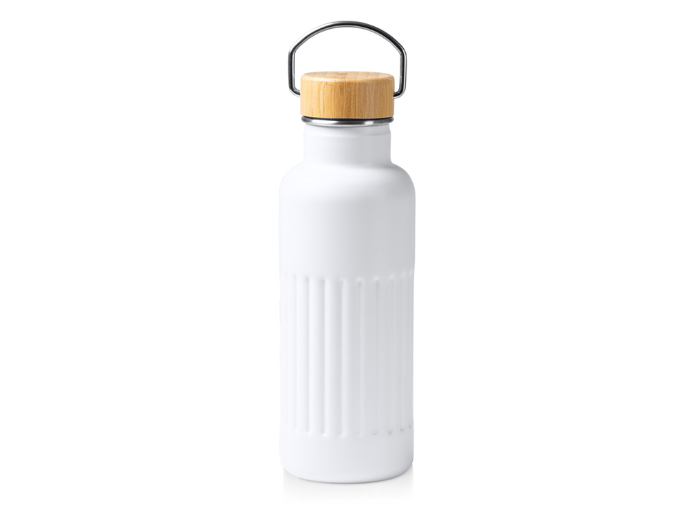 Термобутылка из переработанной нержавеющей стали 304 с двойными стенками и бамбуковой крышкой. Объём: 500 мл. Упакована в экологичную коробку.