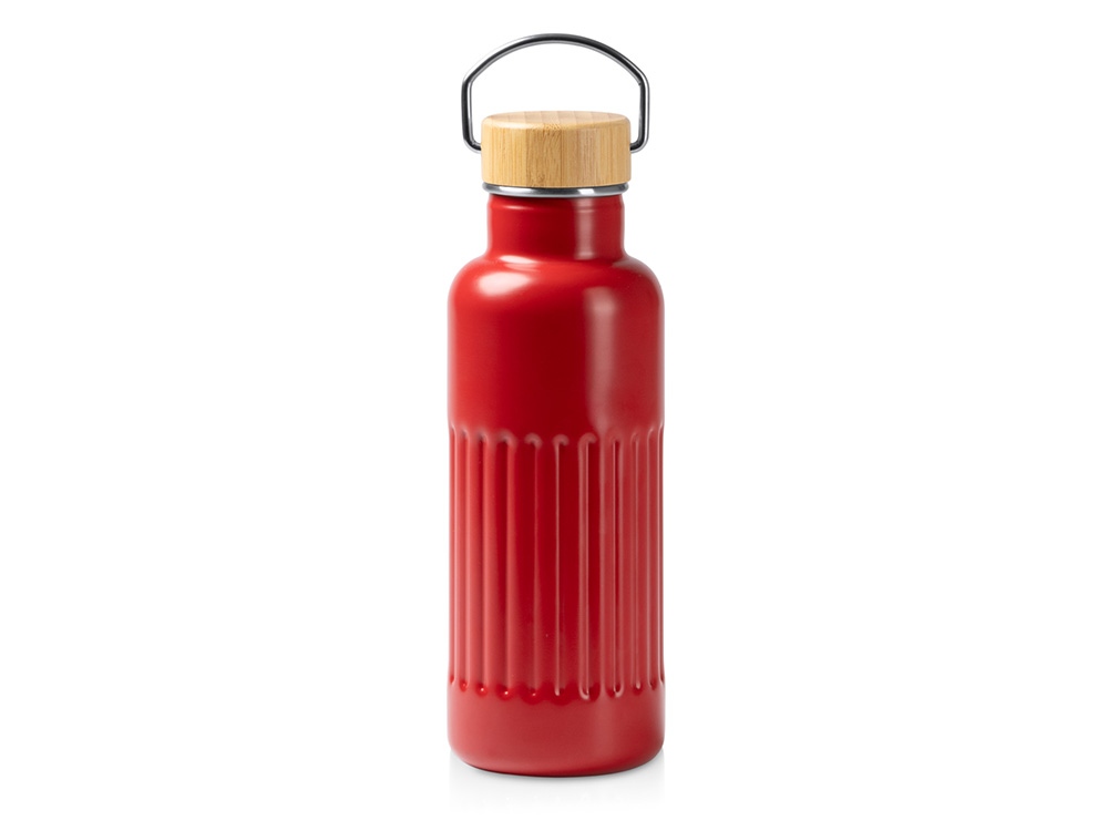 Термобутылка из переработанной нержавеющей стали 304 с двойными стенками и бамбуковой крышкой. Объём: 500 мл. Упакована в экологичную коробку.