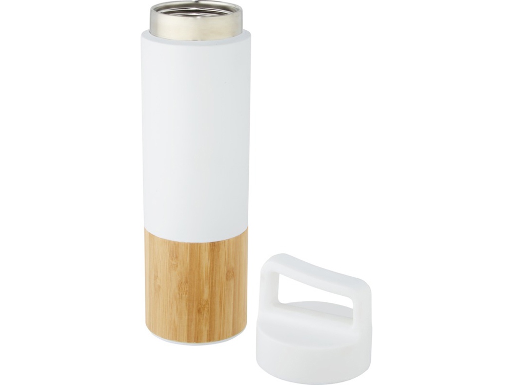Термобутылка из нержавеющей стали 18/8 с медной вакуумной изоляцией, которая сохраняет напитки горячими или холодными в течение нескольких часов. Имеет модный элемент из бамбука; бутылку легко носить с собой благодаря ручке на верхней части крышки. Бутылка имеет широкое горлышко, поэтому ее легко наполнять и мыть. Протестировано и одобрено согласно немецкому законодательству о безопасности пищевых продуктов (LFGB), а также проверено на содержание фталатов согласно нормам REACH. Объем 540 мл. В коробке из переработанного картона. Нержавеющая сталь, бамбук.