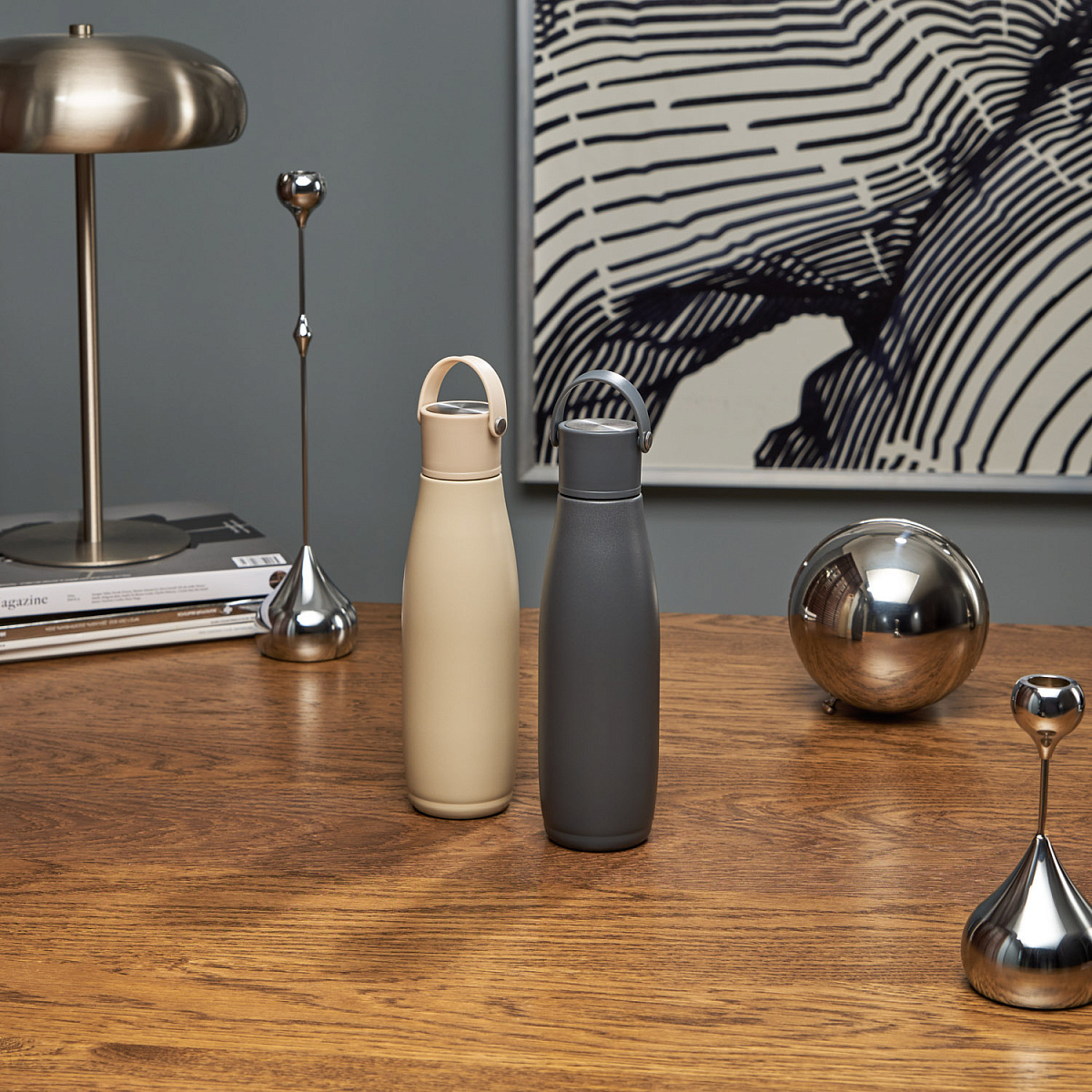 Термобутылка Bosca объемом 480 мл — современный дизайн и практичность в каждом элементе. Обтекаемая форма удобно ложится в руку, а крышка с надежной конструкцией и удобной ручкой делает переноску максимально комфортной.