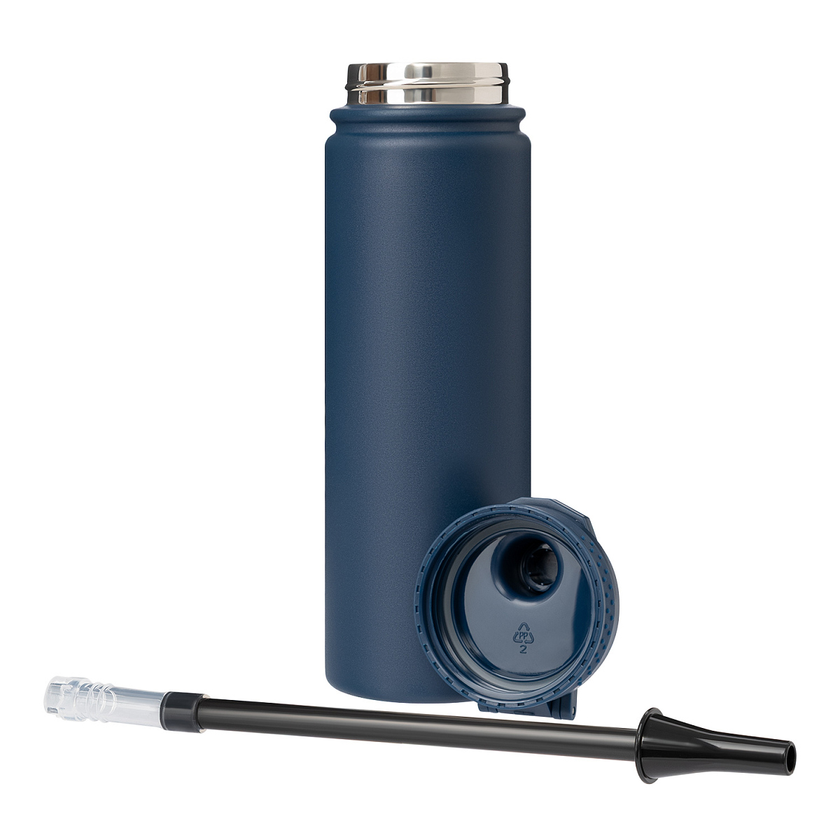 Бутылка оснащена съемной трубочкой. Удобная ручка на крышке облегчает переноску и позволяет прикрепить термобутылку к рюкзаку или сумке.