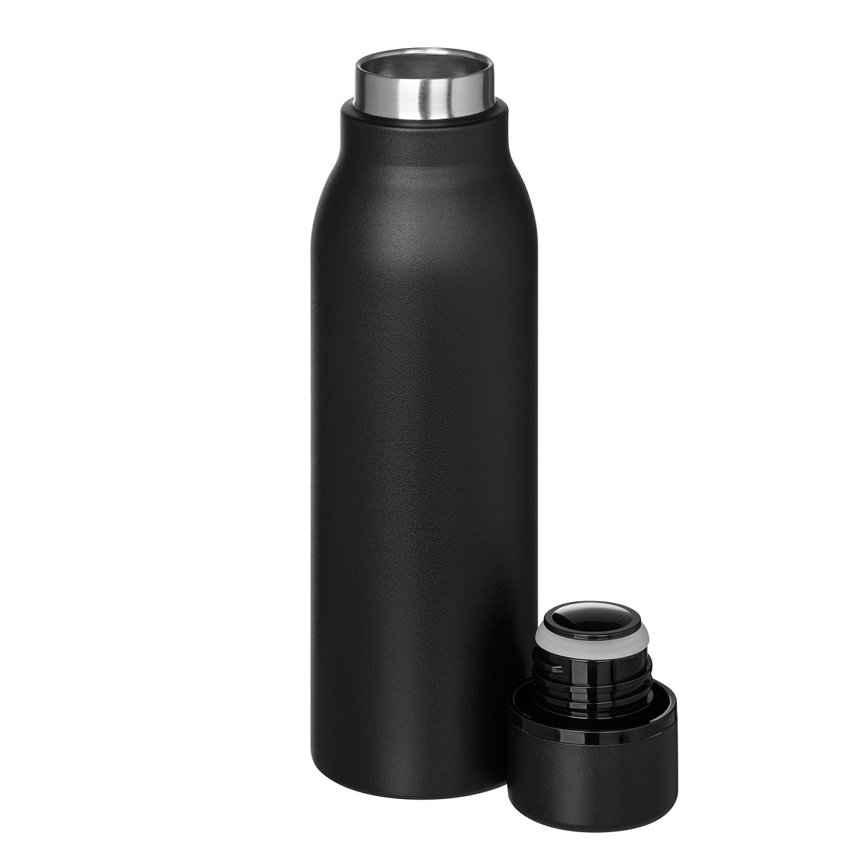 Термобутылку классической формы удобно брать с собой в офис, спортзал, на пробежку или в поход. Крышка в цвет корпуса, полностью литой корпус бутылки, вакуумная герметичная конструкция из двухслойной высоколегированной стали марки 304, порошковое покрытие корпуса и крышки.