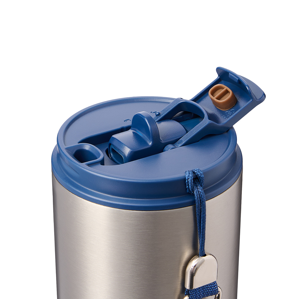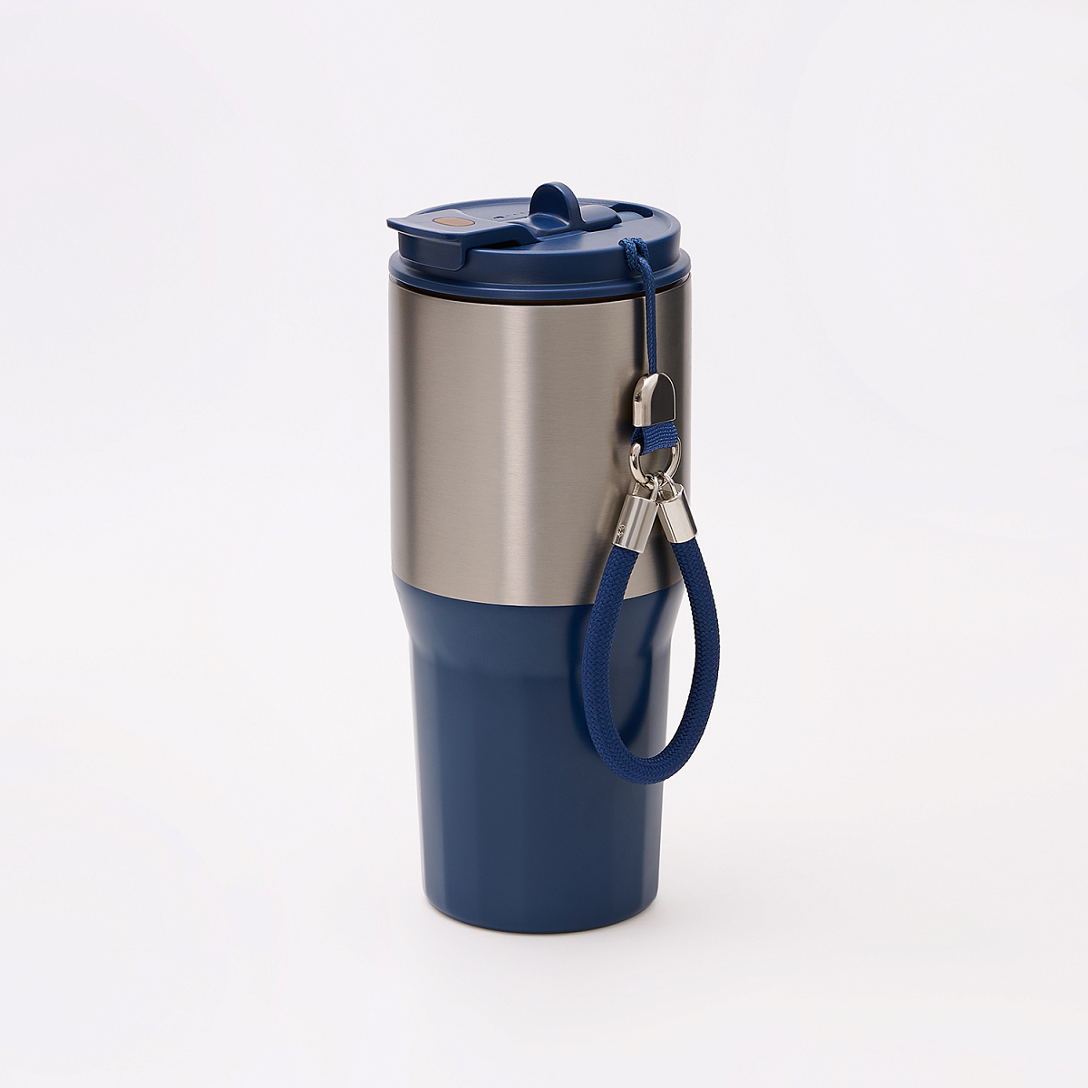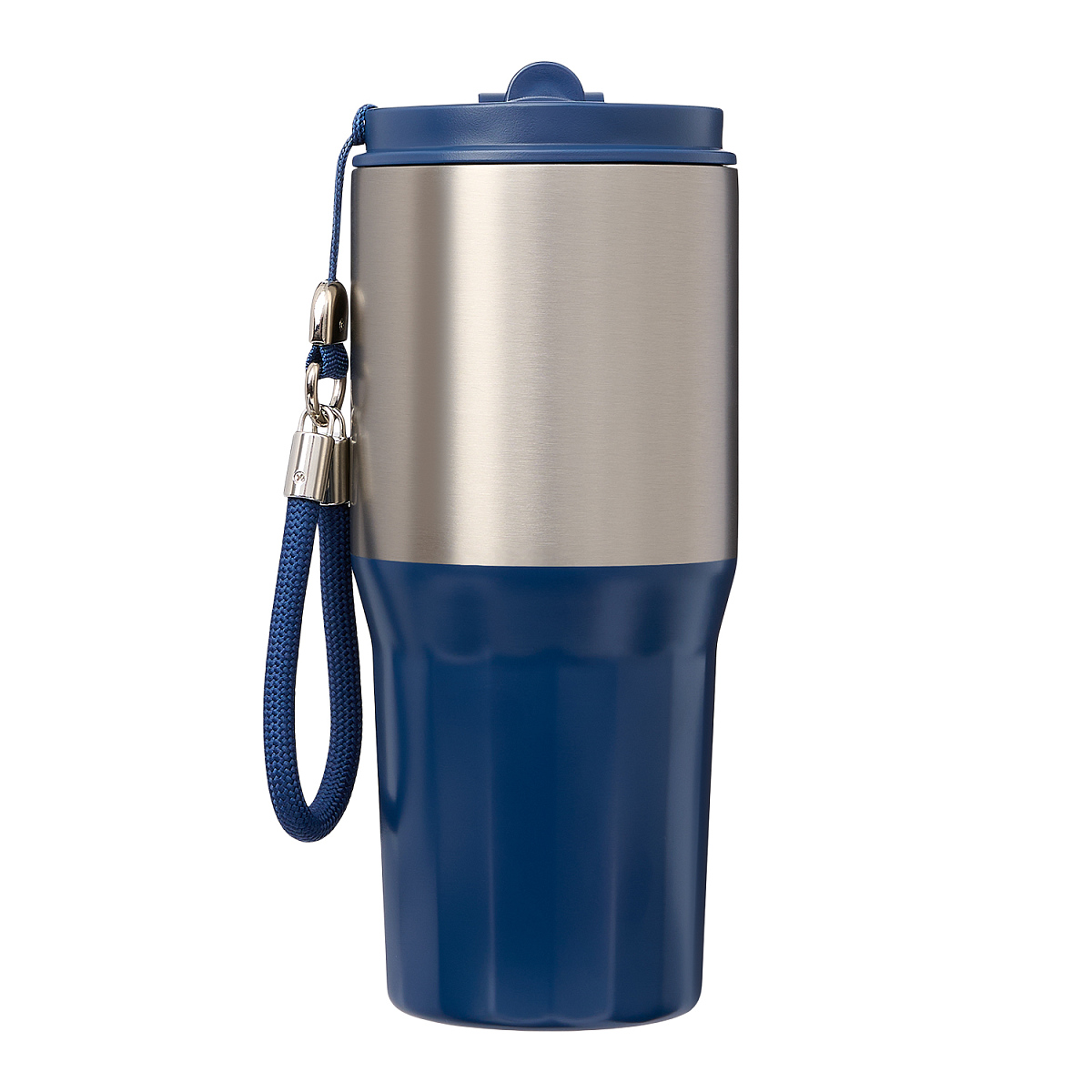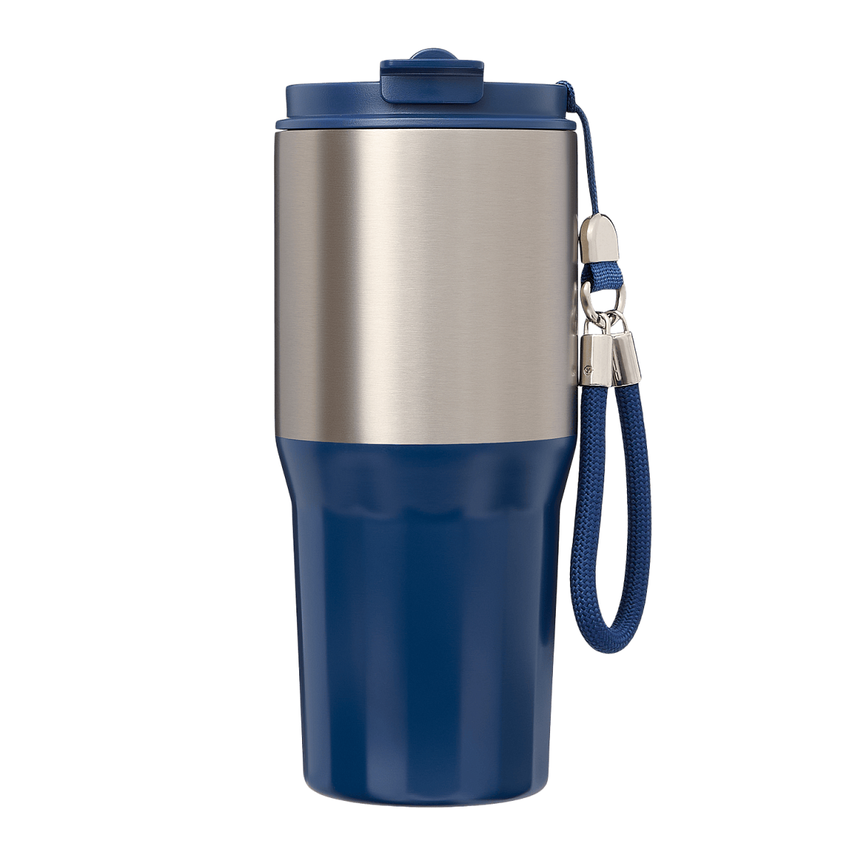 Внутренний слой из пищевой стали 304 марки, которая не впитывает запахи, не окисляется и сохраняет вкус напитка. Внешний корпус надежно защищен 201 сталью с комбинированным покрытием, где матовая текстура сочетается с гладким акцентом. В комплекте идет удобный, прочный и легко снимаемый ремешок, который превращает термокружку в идеальный аксессуар для активного образа жизни.
